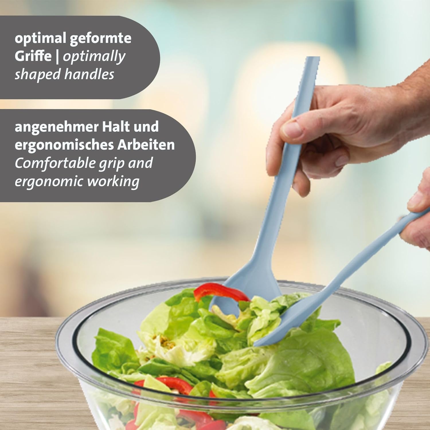 The 2-piece salad servers with classic modern shape are a must-have in any kitchen: with it you can prepare and serve salads quickly and easily. After use, the helper can be easily cleaned in the dishwasher and stored to save space.