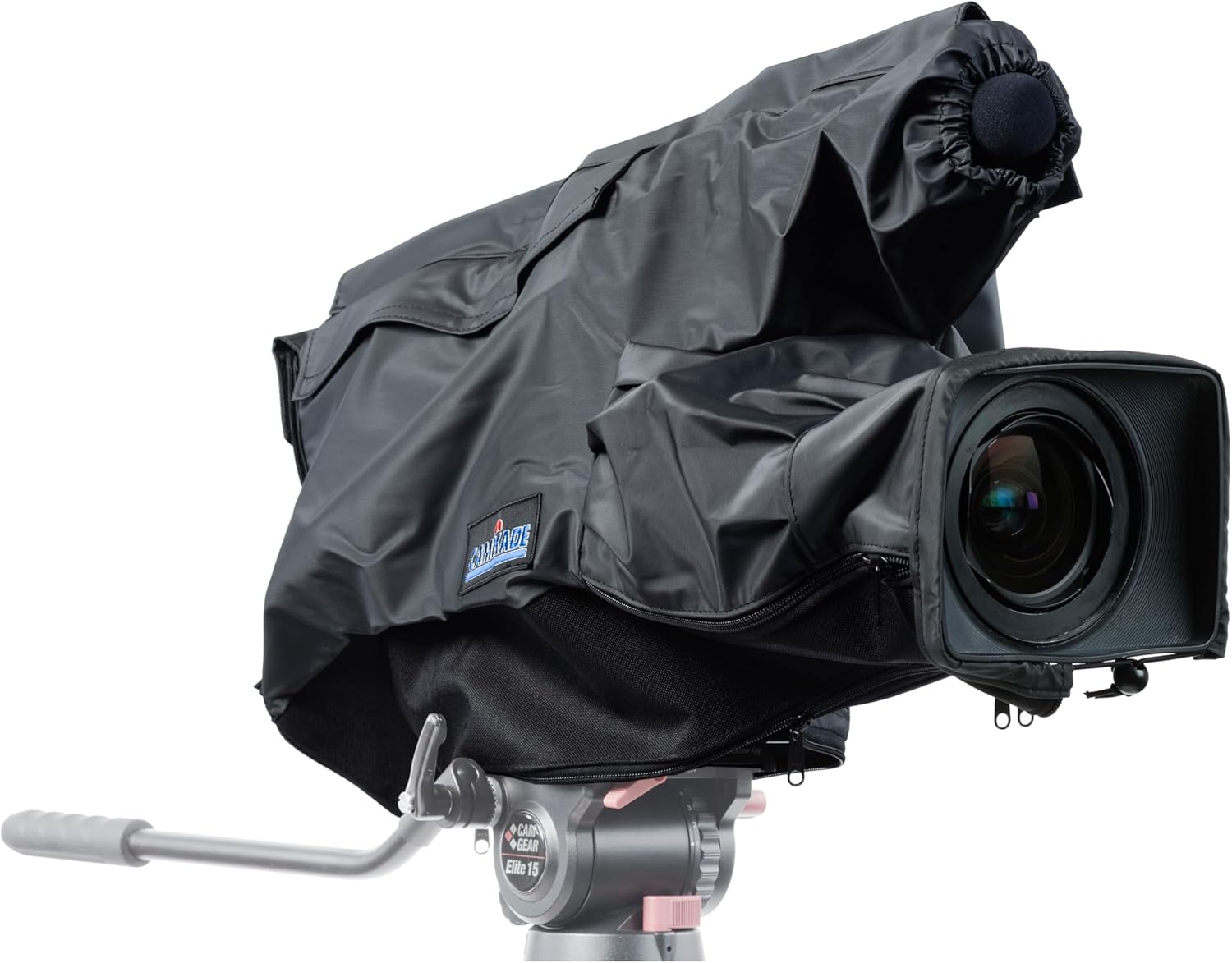camRade wetSuit Camera Rain Cover for Blackmagic URSA Broadcast The camRade WetSuit Blackmagic URSA Broadcast is a soft and flexible rain cover that protects your camera from the elements. This cover is tailor-made for the URSA Broadcast Camera by Blackmagic Design. This wetsuit consists of one part and covers viewfinder, microphone and other accessories. The special virtually silent fabric reduces unwanted noise effects caused by wind and rain. Whether you use the camera as a handheld camera or on a tripod, the cover can be neatly closed with the multi-zip system on the bottom. The cover has a clear vinyl window on the side that can be opened and closed with Velcro fasteners. This allows for good visibility when you need to adjust the menu, select audio input levels, etc. This item comes to you in a waterproof bag with zip that you can use to store and transport the cover when not actively using it. Key Features Perfect fit for the Blackmagic URSA Broadcast Camera Tailored from waterproof, virtually silent fabric Protection from bad weather conditions Full access to controls, ports, memory cards, display, zoom, battery compartment and hand grip Sturdy easy-on easy-off construction with Velcro fasteners and YKK® zips. Handmade in France, Europe 5 year warranty External dimensions: 40 x 35 cm. Weight: kg: 0.80.