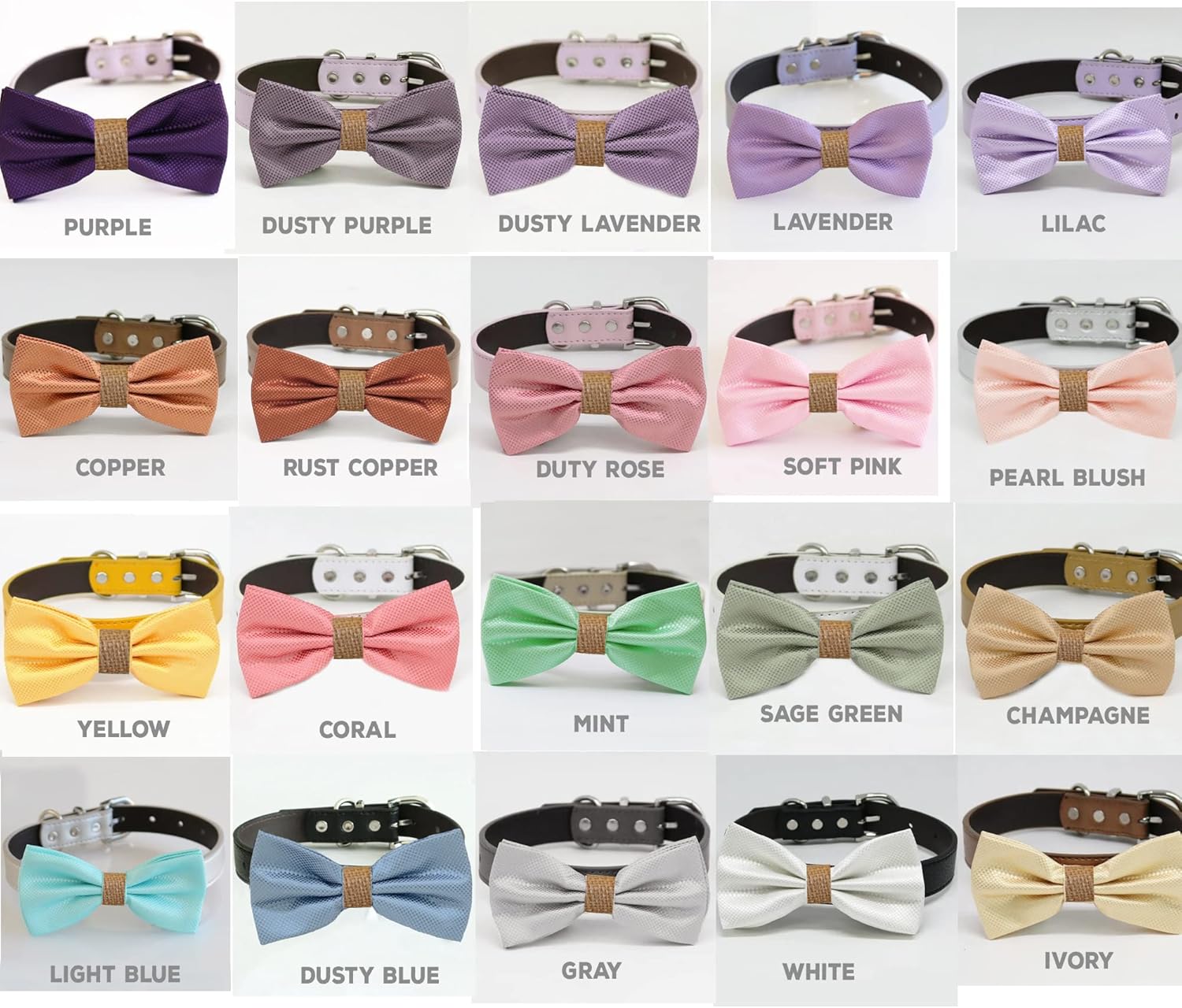 | Color | Collar of Color: Black, Brown, Copper, Green, Gray, Ivory, Light Blue, Navy, Red, Royal Blue, Soft Pink, Purple or White - Bow Color: White- Color of ribbon: Champagne |