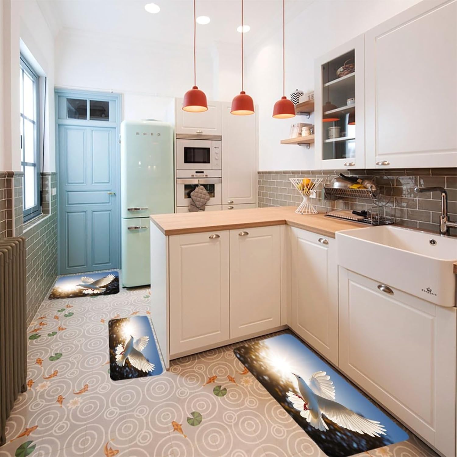 Transform your kitchen, office, or laundry room with our 3PCS kitchen mats setโa must-have farmhouse kitchen rugs and spring kitchen mats combo. As a non slip soft kitchen area rug and cushioned anti fatigue kitchen mat, it's crafted from pill-resistant flannel that offers a gentle, supportive surface for standing long hours. The farmhouse runner rug and farmhouse low-pile runner rug pieces feature a low-profile floor mat for kitchen design, ensuring they fit effortlessly under doors and in tight spaces.This kitchen decor runner rug set is more than just a stylish addition; it's a practical non-slip standing sink mat. Whether you're washing dishes, working at your desk, or doing laundry, the anti fatigue mats provide steady support to keep you comfortable. The non-slip backing keeps each kitchen floor rug securely in place, even in high-traffic areas.Perfect for indoor and outdoor use, this set embodies the cozy charm of farmhouse kitchen rugs and the fresh vibe of spring kitchen mats. It's a versatile, easy-to-care-for solution that combines functionality with timeless style, making it an ideal choice for any home upgrade.