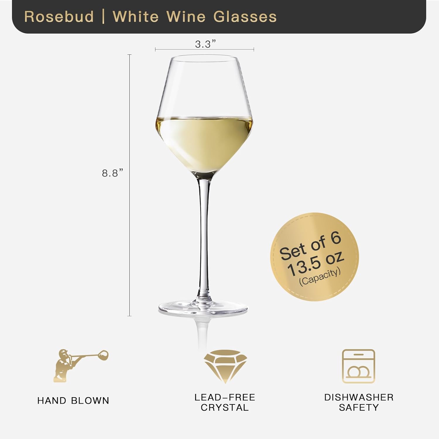 | Other Special Features of the Product | Hand Blowing, Lead-free Crystal, Long Stem Wine Glasses, Rosebud Glassware |