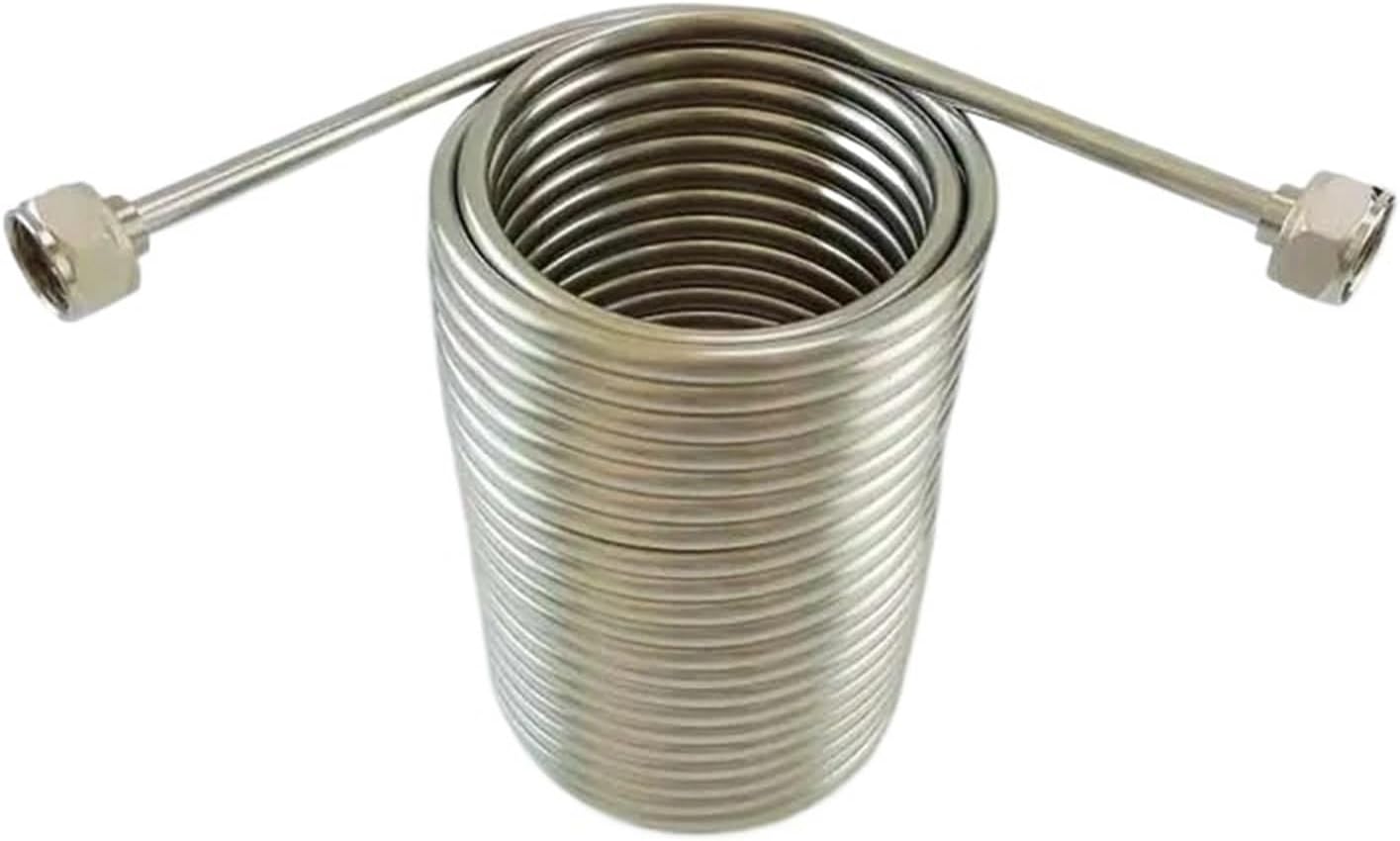 Name:50' Stainless Steel Coil ,Jockey box coil with connector(Only coil ,not include tap,box and shank)Description:This is50' of 5/16" O.DStainless Steel beer coil which is double looped in order to fit in smaller coolers. This draft beer coil comes with beer hexnut, stainless steel connector on each end. Rolled dimensions: 5" Diameter x 8" High.The thread of the hexnut is 5/8" G.Make your jockey at home.Package: 1 pieces of coil and 2 sets of coil connectors.==========Hign-concerned Chemical : NoneQuantity : 1 pcsModel Number : BR-001Bar Accessories Type : Drinking StrawsCertification : CE / EU,CIQMaterial : STAINLESS STEELType : Bar AccessoriesCoil Diameter : 5"Coil Height : 8"**Purchase Notes***Because it is manual measurement, please allow 1-3% error and make sure not to mind ordering.*Product photos are taken in kind, because the light is different from the display, so the color may be different. The product will be subject to the actual product received.