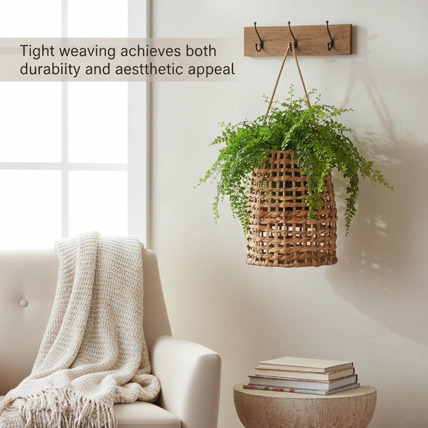 Description: Introduce a blend of natural beauty and practical organization to your home with our handwoven Wicker Hanging Basket. Expertly crafted using sunhemp and a supportive iron frame, this wall basket is built for everyday use while adding an artisanal touch to your space. Measuring 5.7 by 3.5 by 12.0 inches, its compact size is perfect for tight corners and walls, helping you declutter without sacrificing style. The tightly woven body ensures your items are held securely, from fresh produce in the kitchen to small potted plants or decorative dried florals. We love its versatility. Use it in the kitchen to keep garlic, onions, or cooking utensils within reach. In the bathroom, it neatly holds toiletries or rolled towels. In the living room, it corrals magazines, remote controls, or throws. Its flat back sits snugly against the wall for a clean, installed look. More than just storage, this basket is a decor piece. The neutral khaki hue and natural weave pattern complement various styles, from farmhouse to boho, adding warmth and texture. It's an eco-friendly option for those who appreciate sustainable, handcrafted home goods. Features:. -Color: Khaki. -Material: Ironwork + Sunhemp. -Size: 14.5×9×30.5 cm / 5.7×3.5×12.0 inch. Note:Manual measurement, please allow slight errors on size.The colors may exist slight difference due to different screens. Package Including 1 * Wicker Hanging Basket