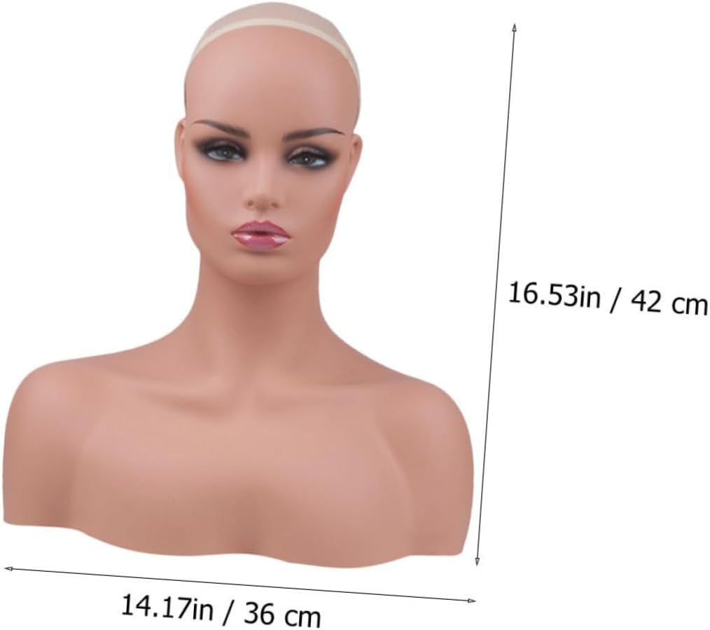 Package List 1 x head model Characteristics -Size: 42.00X36.00X18.00cm/16.51X14.15X7.07 in head. -Material: PVC head model -The PVC material is to touch, break proof and will not scratch your ornaments especially the jewelry female mannequin head. -Different from plaster model, it is lightweight, easy to move without much strength mannequin head with shoulders. -Also a good model to put your DIY ornaments display head model. -Beautiful appearance, reasonable size, convenient to carry and keep, easy to use bust head . -The size is perfect to suit all kinds of wigs in different style hat display model.Goods Descriptionhat display model Especially suitable for people who own a boutique and in great need of displaying the ornaments.display wig model The is a very nice mannequin head.woman head model It has an attached net which keeps your wigs from slipping off.mannequin head If you are a wig specialist, or a seller of wigs, hats and jewelry, It can help you better display your products, better show the uniqueness of your products, and increase