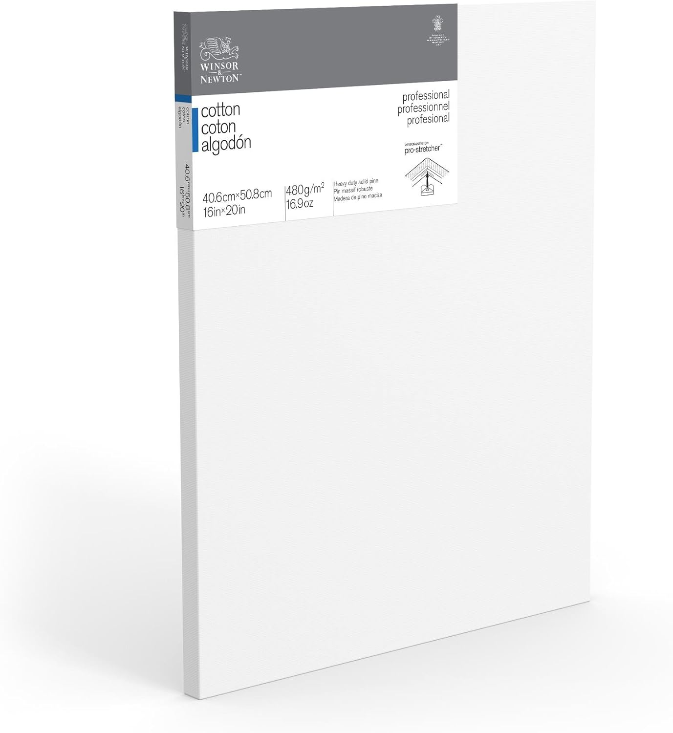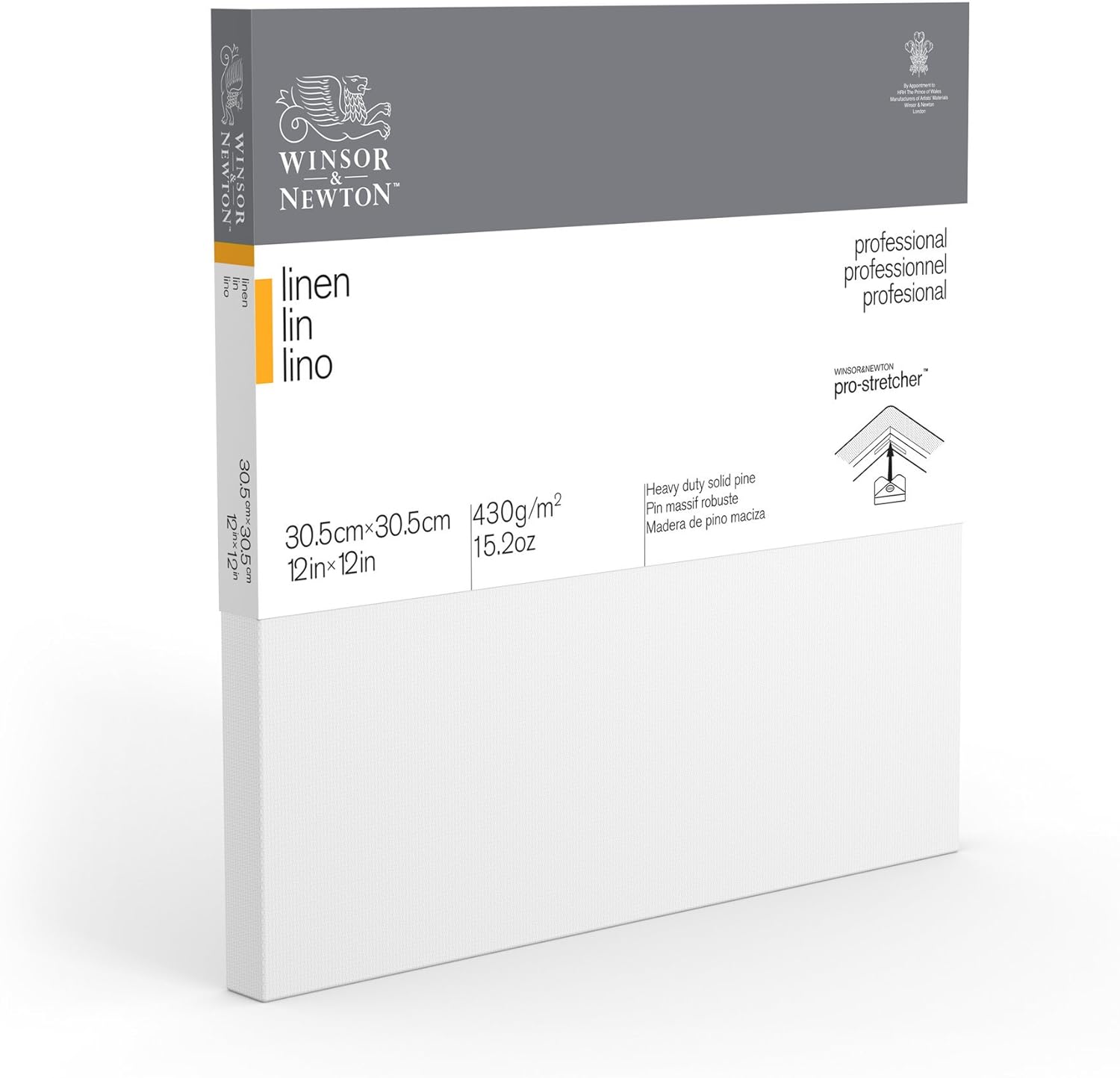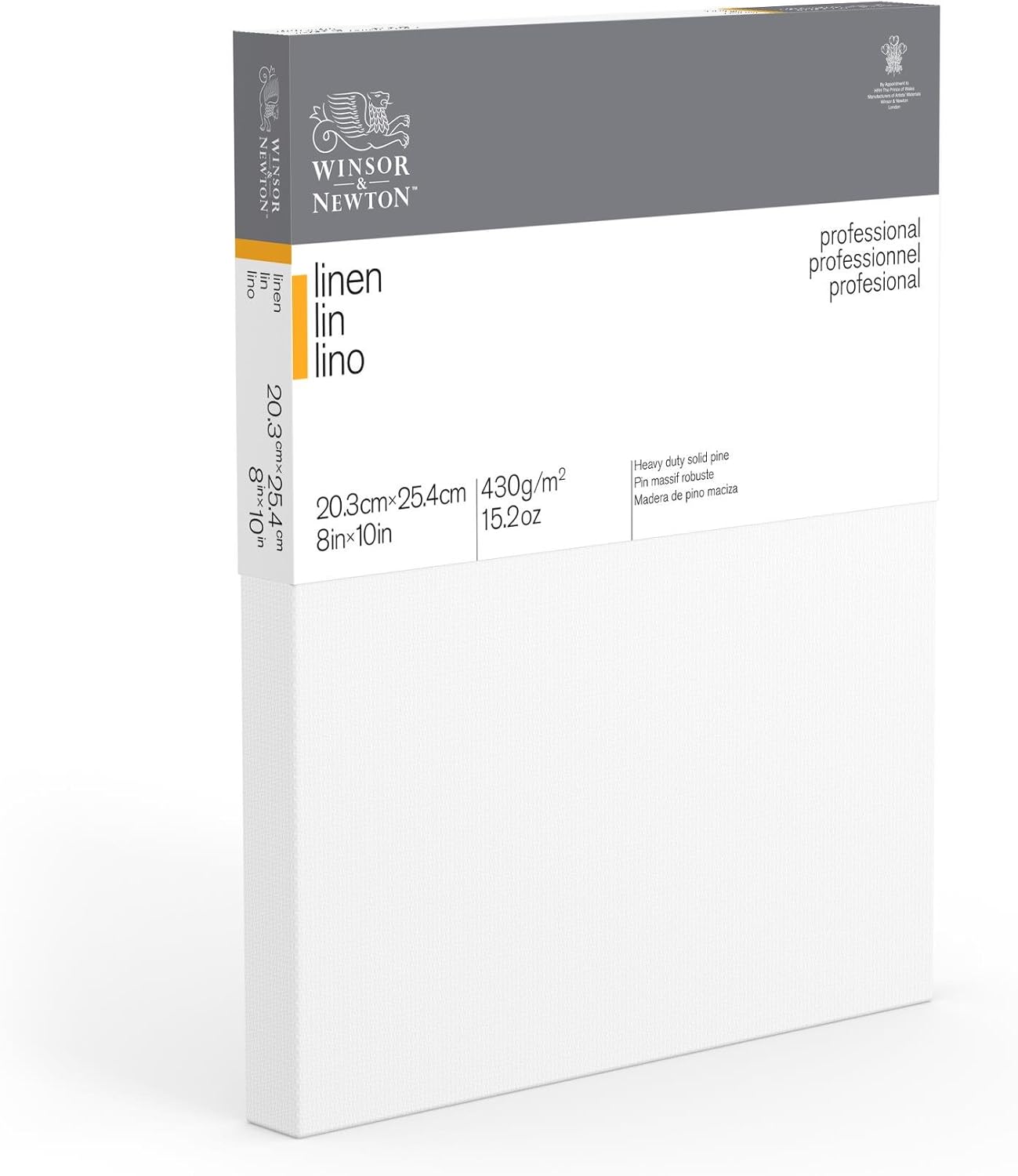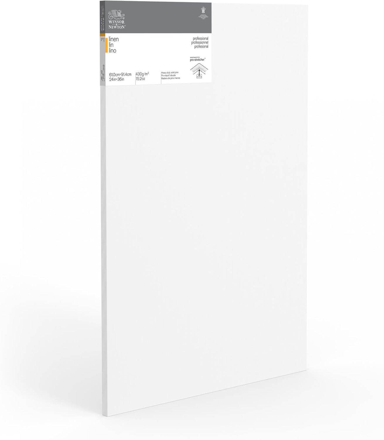 A professional range of back stapled pre-stretched artist canvas manufactured to the highest quality standards with traditional 100% linen cloth and medium grain surface. Stretched by hand for best tension and tailored corners. Professional frame construction with kiln-dried beveled stretcher bars 1-5/8 inch deep staple free edges can be painted to display finished paintings with or without a frame. Triple coated with acid free sizing and two coats of highly pigmented acrylic primer ( 12 oz/sq yd primed ). Ideal for all techniques including heavier applications of colour. Balanced absorbency and tooth prevents sinking of oil colors and improves adhesion. Excellent for use with oil acrylic and alkyd colour.