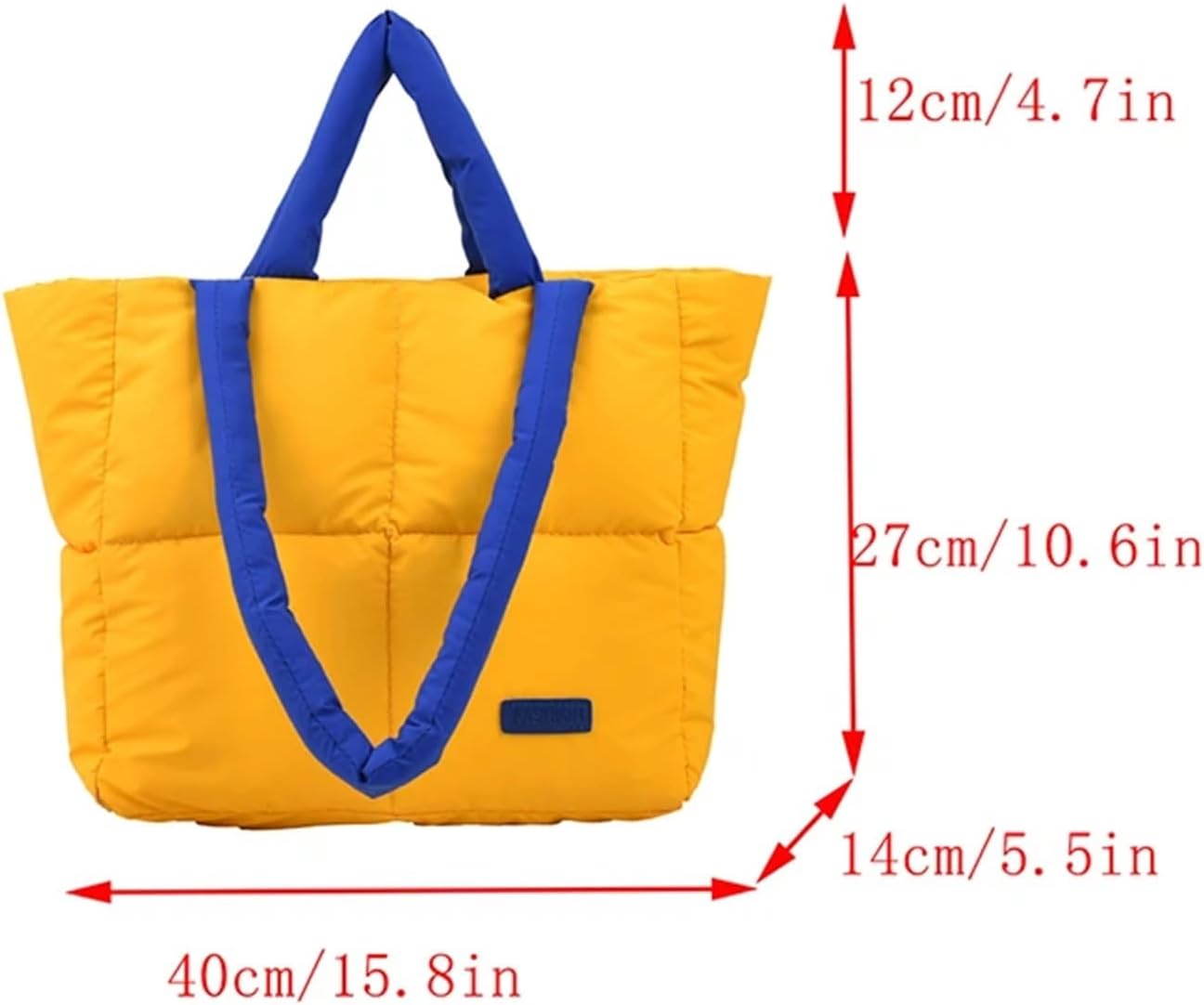 This unique padded shoulder bag with wide, thick shoulder straps is suitable for shopping, work, travel, and everyday use, and is both stylish and attractiveSize:( Width) 40cm * (Height) 27cm * (Thickness) 14cmNote: 1 Inch=2.54 CM; 1 CM=0.39 InchThere is a little smell from the new bag normally, it'll be dispersed through air.Note:2.Due to the difference between different monitors, the picture may not reflect the actual color of the item. Thank you!