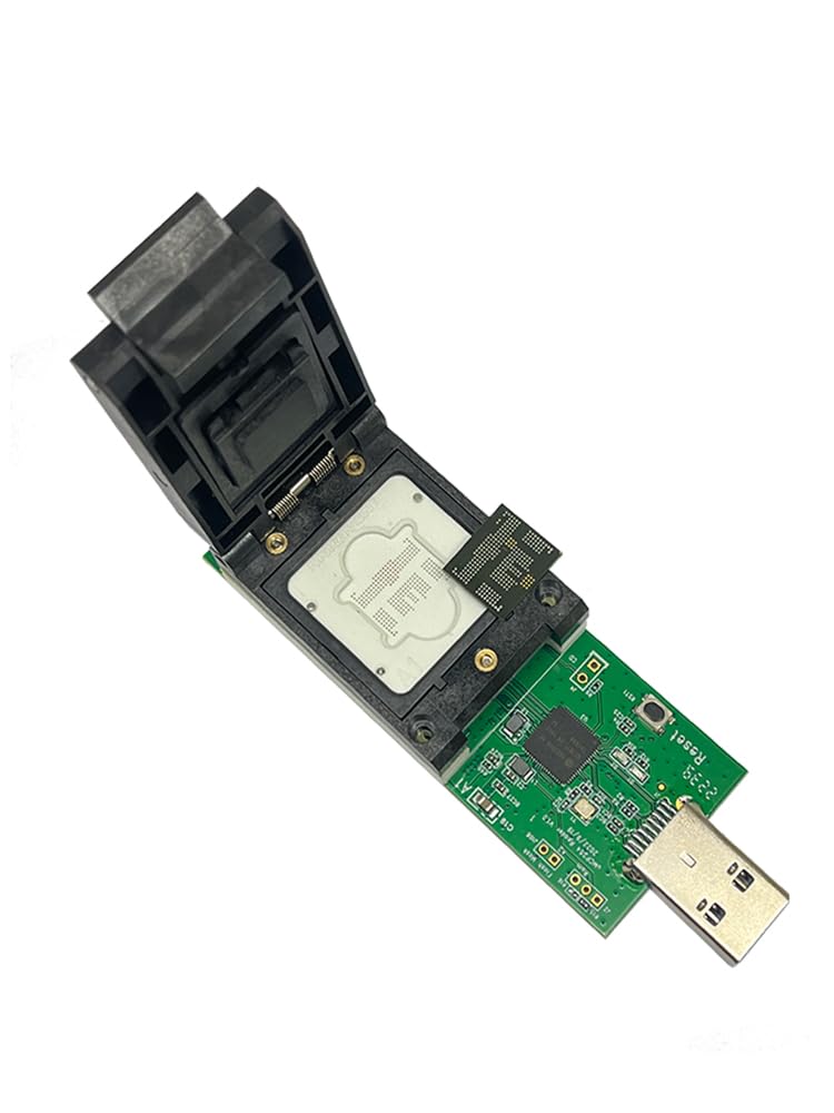 Specifications:Part number:UEMCP254 TO USB3.0IC Package includes:EMCP254,Pin Pitch:0.5mmPin Count:37pinsIC Size:11.5*13mmMain control chip SM3350Material & Performance:socket Body: PEIContacts:Beryllium Copper AlloyContact Plating:Gold over NickelOperation Force:2.0KG min, the more PINs the greater force.Contact Resistance:50m maxDielectric:700V AC for 1 minuteInsulation Resistance:1,000M 700V DCMax Current Capacity : 1ALife Span 1500Times (Mechanical)