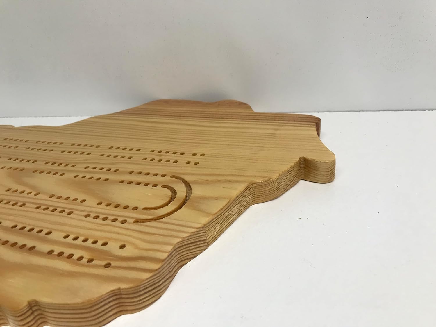 Wisconsin shaped Cribbage board with cards and pegs. This Cribbage Board is a new hand crafted wood board similar to pictures shown. Size and thickness may vary slightly. Each board is made in our workshop with a Router and rest of the board is hand crafted. The front and back are sealed with a clear coat sealer to protect the wood. Each board has its own special characteristics such as: wood grain, knots in the wood; minor imperfections in the wood itself, as well as characteristics that may develop during the hand crafting process.