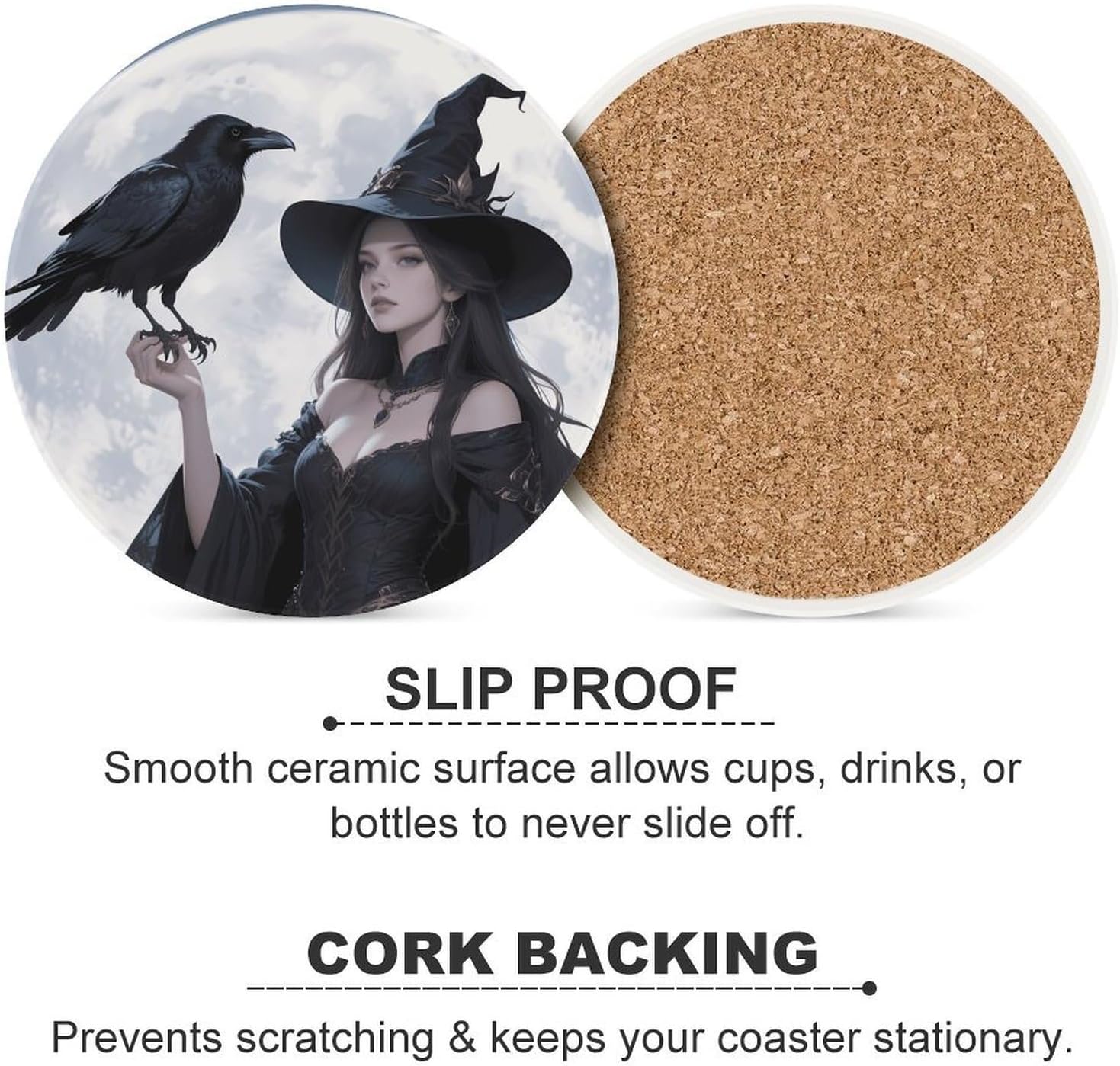 Cute Printed Round Drinks Absorbent Ceramic Coaster with Cork Base Suitable for Kinds of Mugs, Cups, Prevent Tabletop Wear And Scratches, and is Easy to Clean
