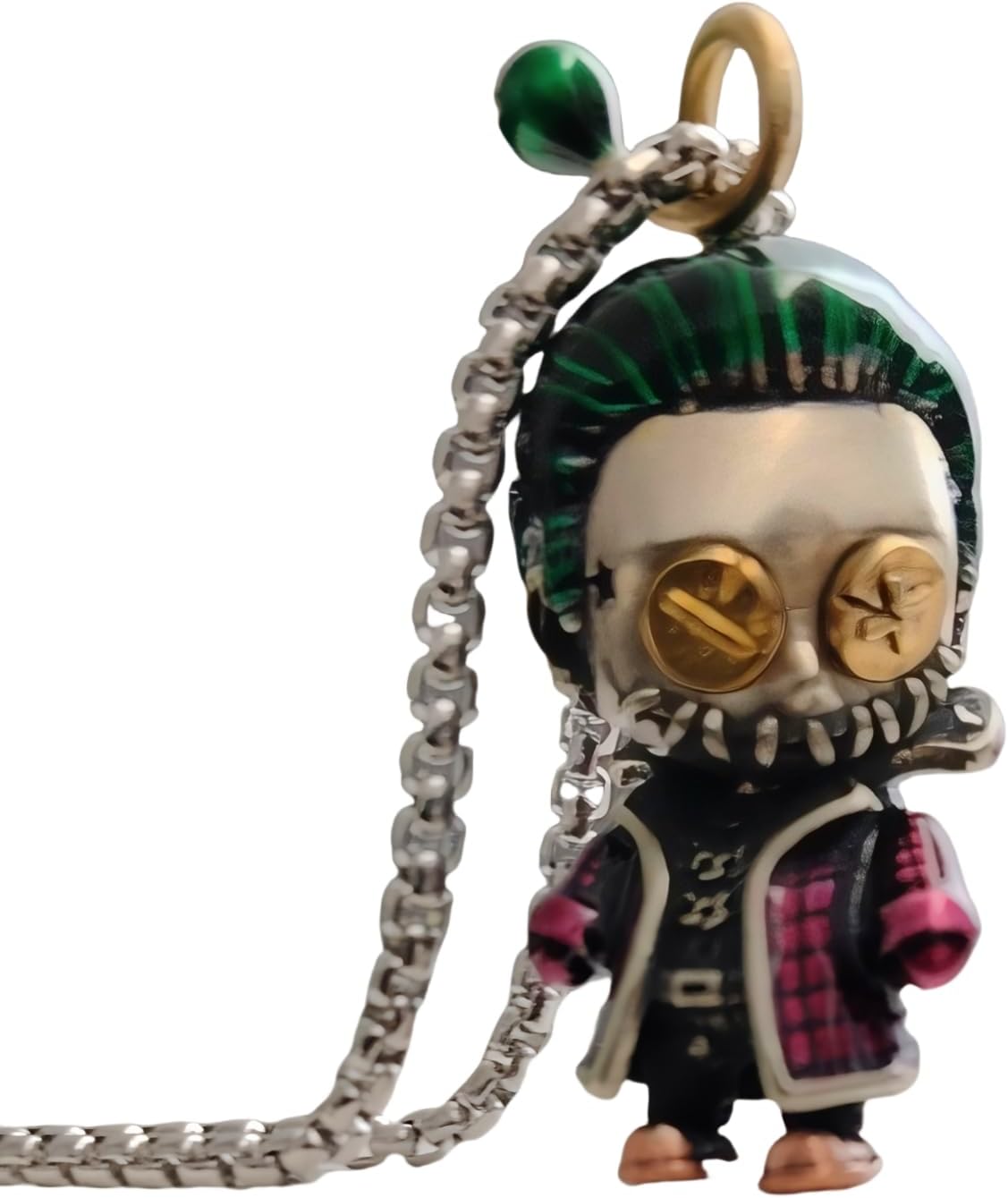 The Witch Bean Doll Clown Woman Pendant Necklace is a perfect blend of gothic dark aesthetics and hip-hop street culture, featuring a vintage-inspired 925 sterling silver, a 3.5 x 2.5 x 1.2 cm (1.4*1.0*0.5 inches) sculpted clown woman mask pendant on a 60 cm (23.6 inches) adjustable chain for both men and women, and a swirling mask design. The rotating mask design gives the pendant a vibrant life that instantly enhances the punk look of the pendant, whether it is worn daily or on special occasions such as festivals. Its dark gothic style and mysterious elements echo the spirit of rock ‘n’ roll, conveying the declaration that “uniqueness is power,” making it an iconic accessory for the pursuit of alternative fashion and self-expression.