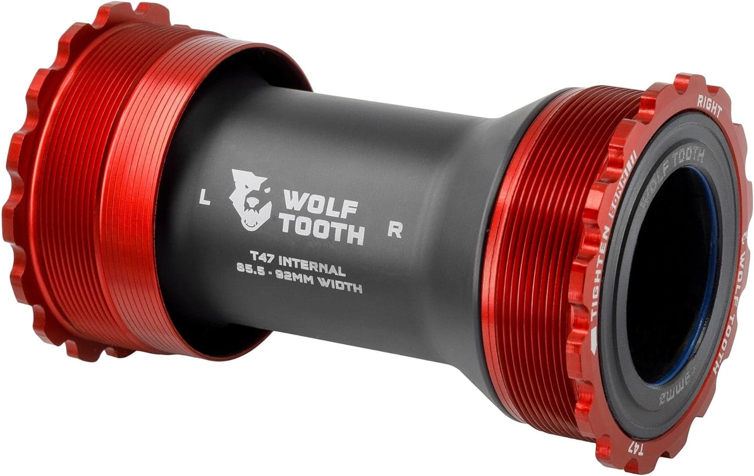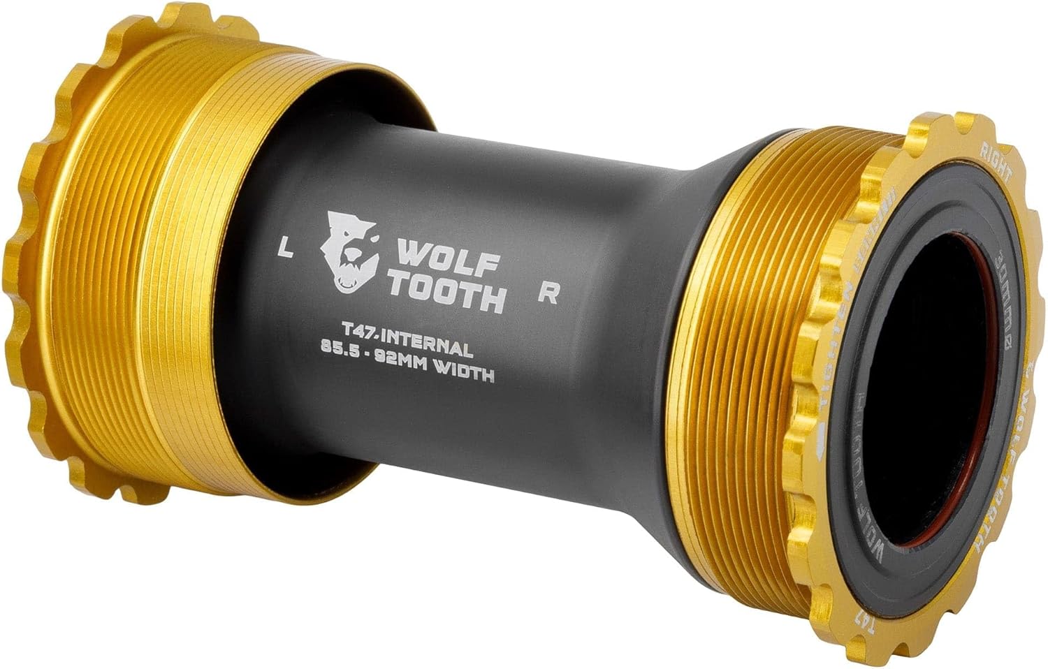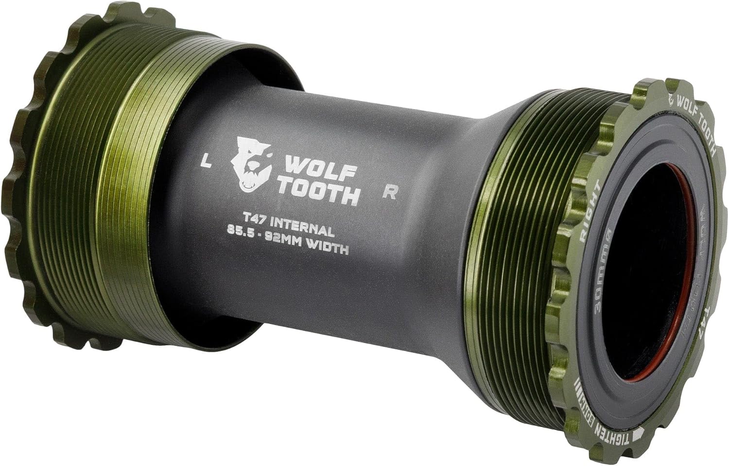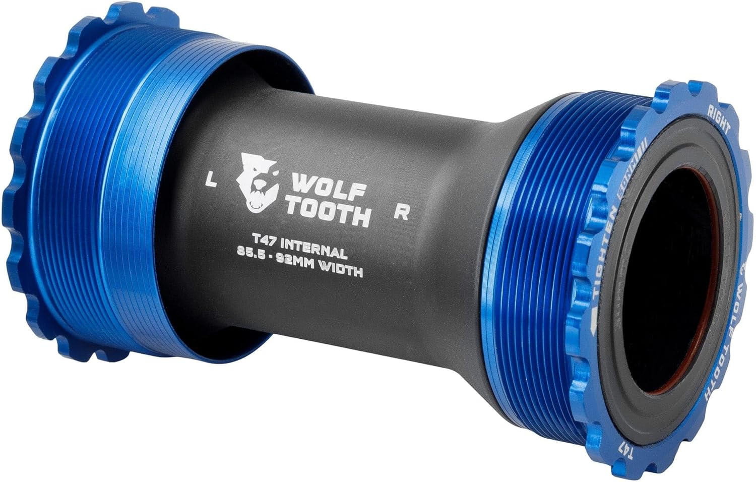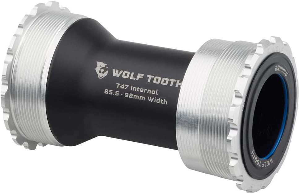 Wolf Tooth T47 Internal Bottom Brackets are engineered to be smooth, durable, lightweight, fast, and user-serviceable. Our ground-up design features custom bearings, seals, bushings, and cups, which eliminate creaking and balance best-in-class weather sealing with optimized bearing radial compression, alignment, and preload for low drag. Wolf Tooth bottom brackets are machined at Wolf Tooth HQ in Minnesota, USA. The bearings in Wolf Tooth Bottom Brackets feature a custom design. The balls and race are made from a hardened chrome bearing steel. This has a higher surface hardness than stainless, which improves the durability of bearing races and reduces spinning resistance and noise. An ACOSUR ZNA coating has also been applied to the race to provide corrosion resistance that is equal to or better than stainless steel after a 500-hour saltwater test. Bearing material paired with an extensive sealing system and the elimination of metal-on-metal contact means Wolf Tooth Bottom Brackets have superior performance in all conditions. - Compatible with 24, 29 DUB, and 30mm spindle cranksets - Adjustable-width sleeve fits 85.5mm - 92mm T47 Internal bottom bracket shells - Best-in-class weather sealing protects bearings from water, mud, debris - Custom Polymer spindle bushings eliminate creaking - Installation and removal with standard 52-16 spline tool - Engineered, machined, and assembled at Wolf Tooth HQ in Minnesota, USA Bottom brackets ship with the following shell and spindle spacers: - 2x2.5mm shell spacers - 24mm spindle - 2x 0.5mm, 2x 1mm, 2mm, 3mm, 5mm spindle spacers - 29mm spindle - 2x 0.5mm, 2x 1mm, 3mm, 5mm, 7.5mm spindle spacers - 30mm spindle -2x 0.5mm, 2x 1mm, 2mm, 3mm, 5mm spindle spacers Compatibility - 85.5 - 92mm width T47 Internal Bottom Bracket Shells - Included adjustable-width internal sleeve fits 85.5mm - 92mm width T47 Internal bottom bracket shells