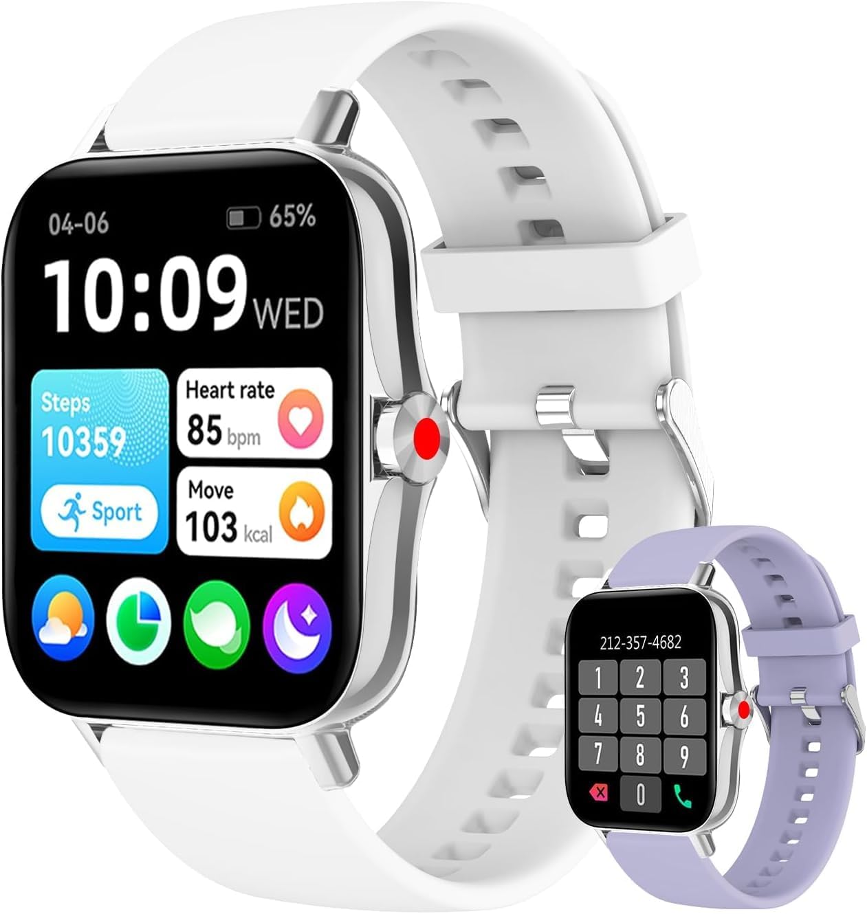 | Additional Features | Answer/Make/Reject Calls, Message Notifications, Pedometer, Calorie, Activity Tracker, Multi-Sport Tracker, Heart Rate Monitor, Blood Oxygen Monitor(SpO2), Blood Pressure Monitor, Sleep Analysis, Sedentary/Drink Water Reminder, Time Display, Screen Brightness Adjustment, Alarm Clock, Weather, Stopwatch, Timer, Music Player, Camera Control, Raise to Wake, IP67 Waterproof |