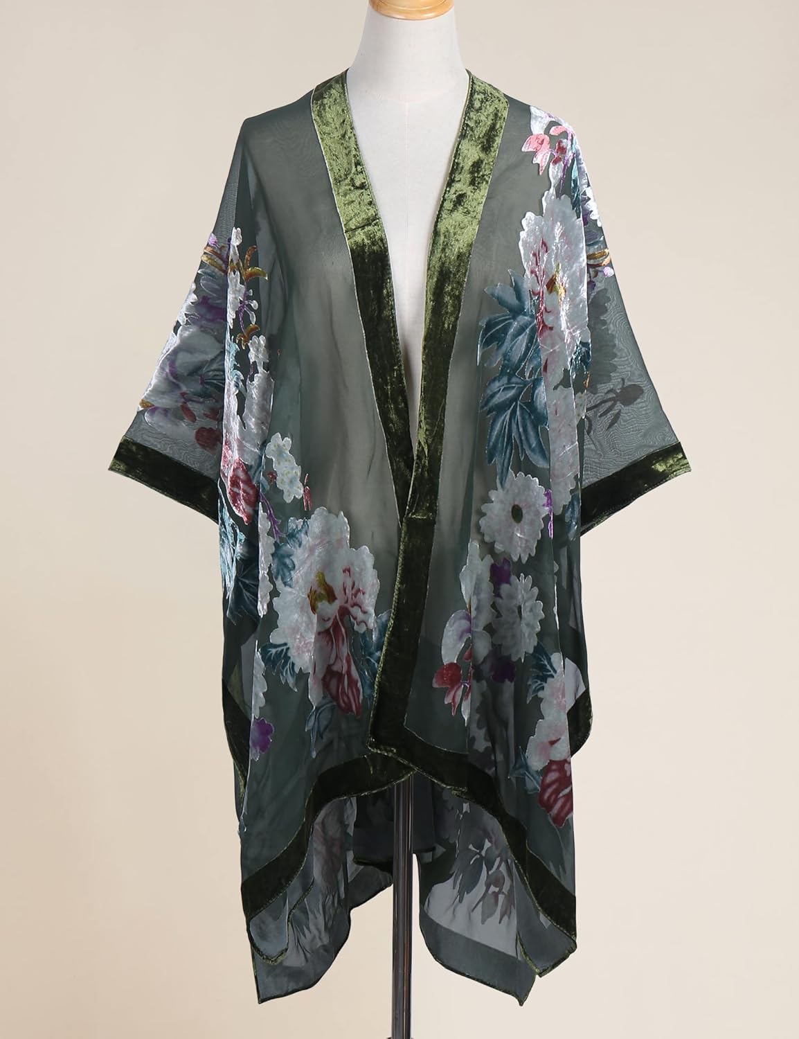 • ✦This coverup Kimono is made of soft and breathable 50%rayon& 50%nylon blended Burnt-out Velvet material; Fabric is very well crafted, soft and flowy.