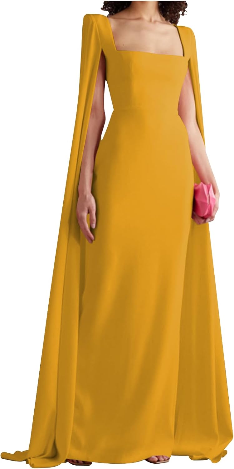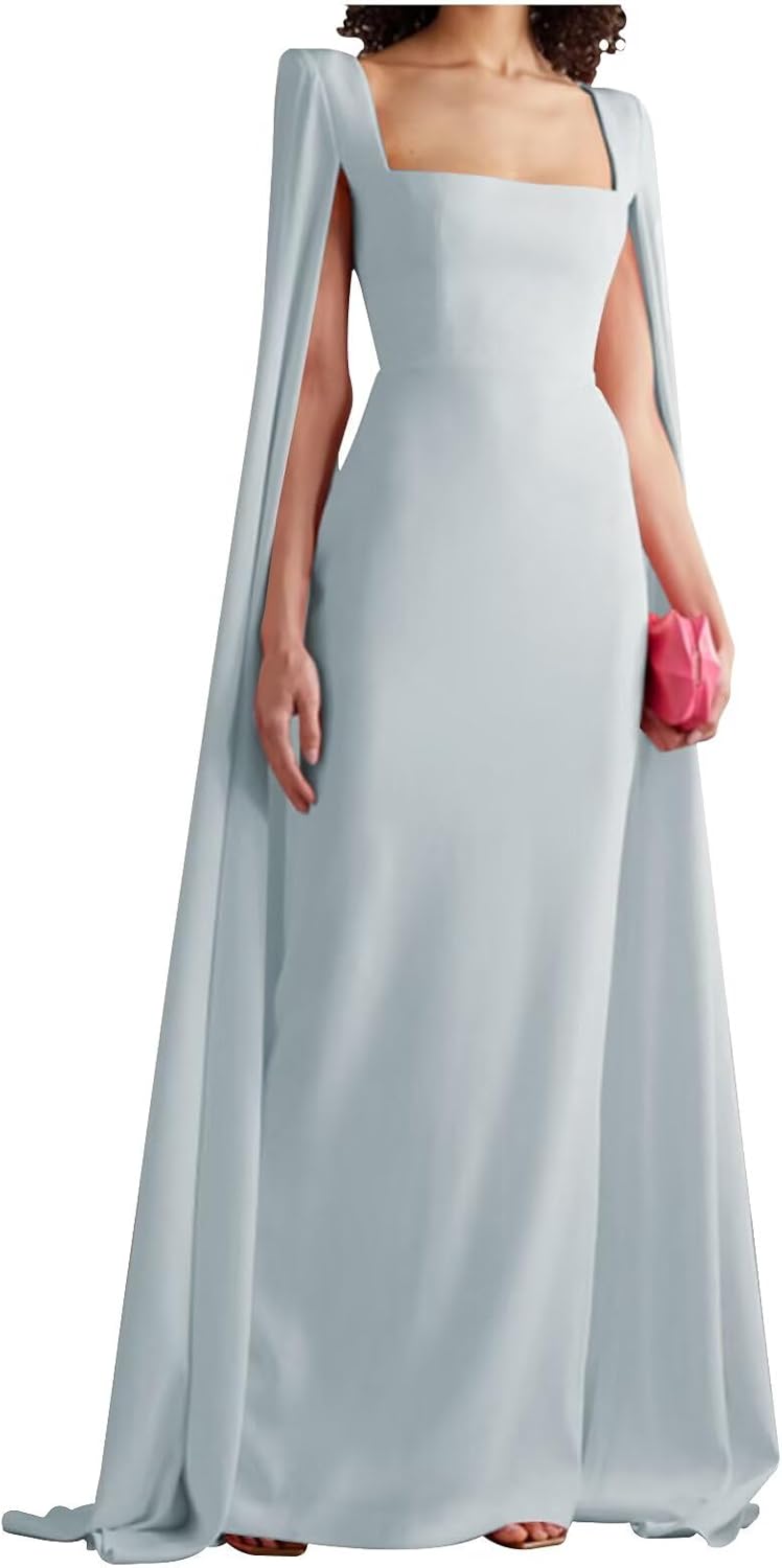 | Embellishment Feature | Back Zipper, Elegant Cape Sleeves, Floor Length Back Slit, High Waist |