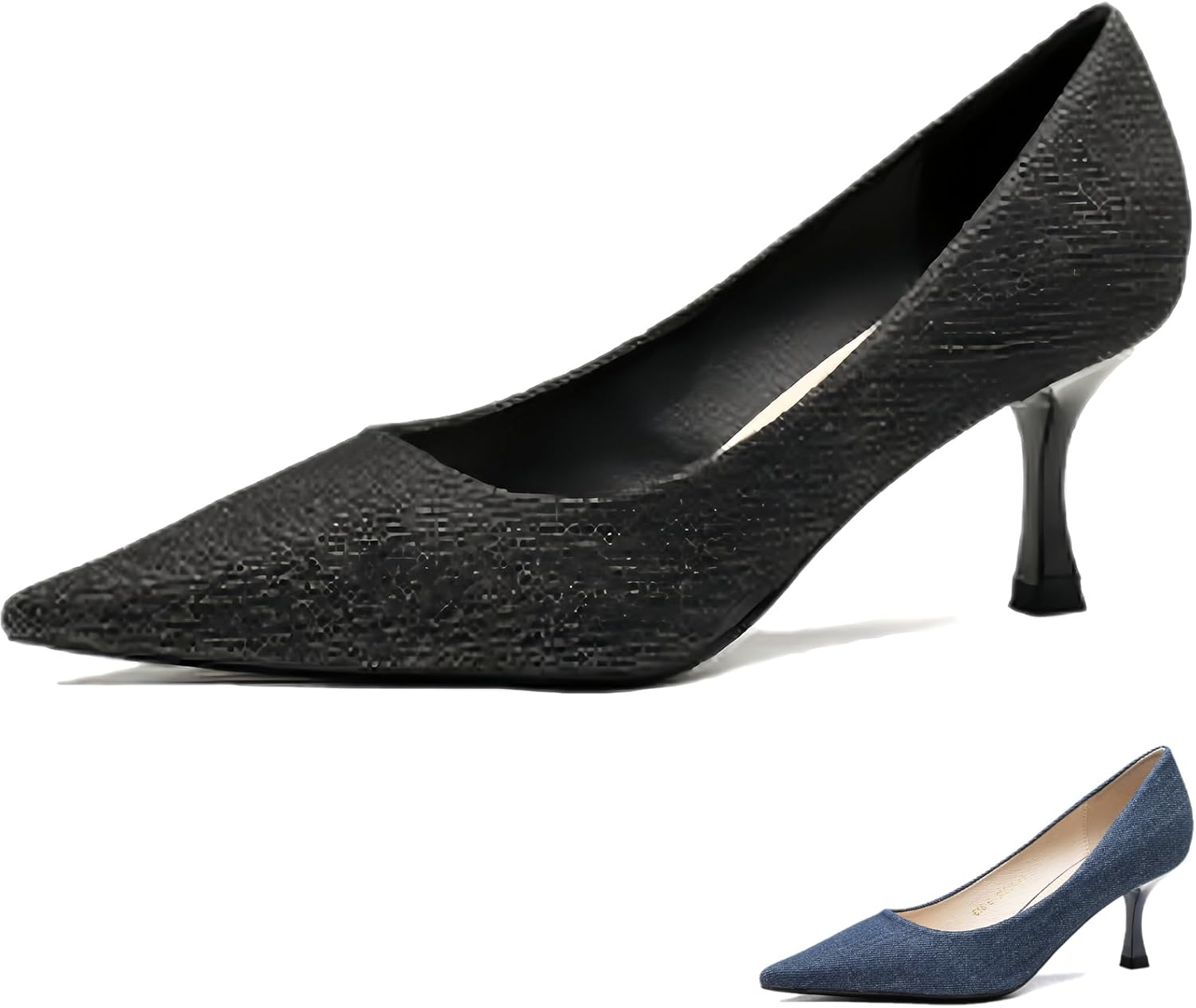 Specifications Product Category: Women's High Heels Upper Material: Denim Sole Material: Rubber Toe Shape: Pointed Wearing Method: Overshoes Heel Height: 3.94 Inches Suitable Season: All Seasons Color: Blue, Black Warm Reminder: To ensure that you can wear the most suitable shoes, please be sure to check the size carefully before placing an order. Due to manual measurement, please allow slight deviation in measurement. Due to different monitors and lighting effects, the product may be slightly different from the color shown in the picture, please refer to the actual product. If you encounter any problems during the purchase process, don't worry, feel free to contact us, our professional customer service team will reply to you as soon as possible, serve you wholeheartedly, and make your shopping worry-free throughout the process.
