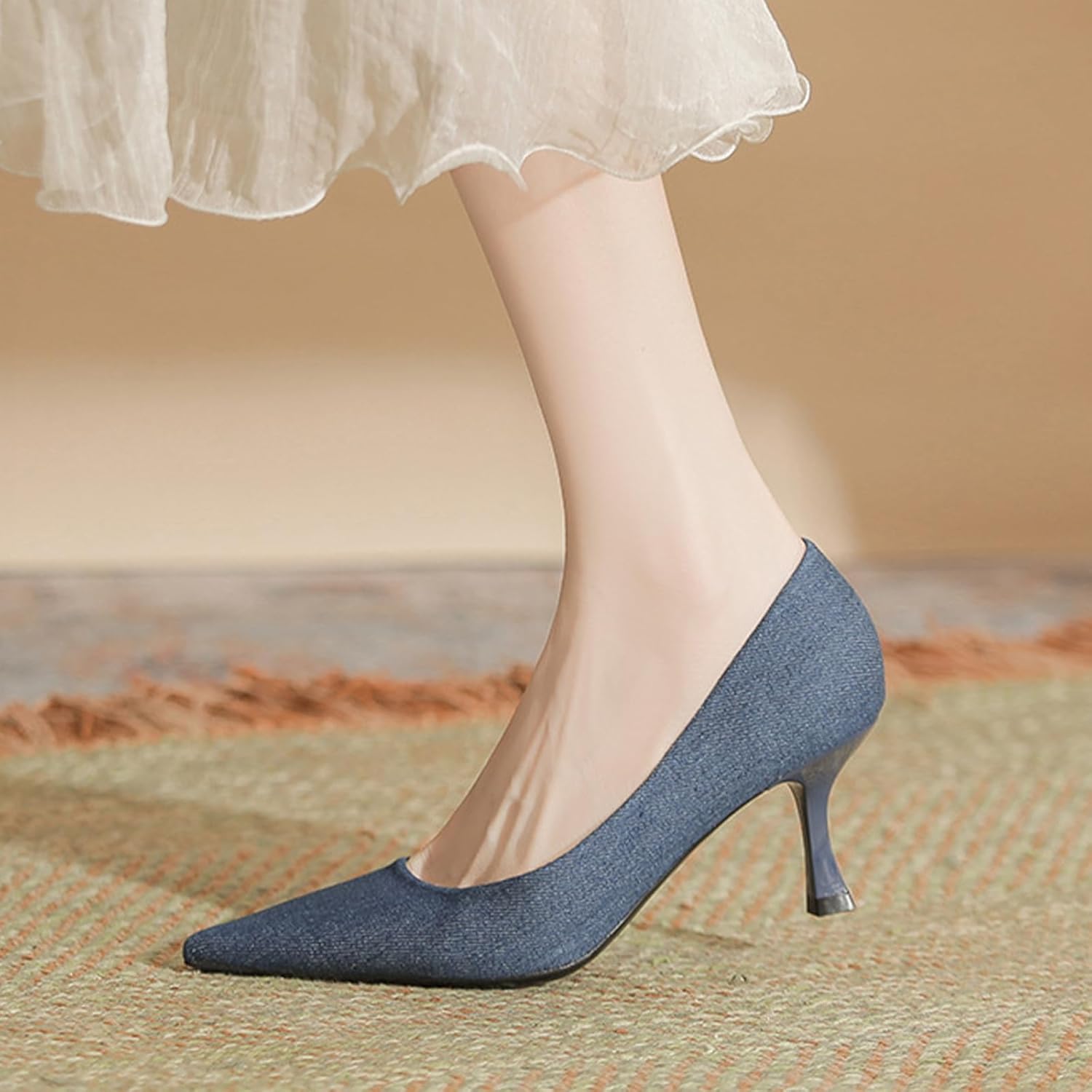 | Model Name | Women's Denim Closed Pointed Toe Kitten Heel Dress Pumps |