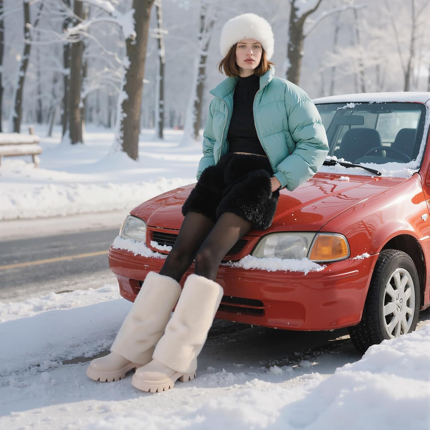 • 【Elegant Design】Those Women's Faux Fur Boots feature a luxurious faux fur exterior for a soft, smooth feel. Expertly crafted with Italian stitching, these knee-high boots ensure durable wear with securely attached fur.