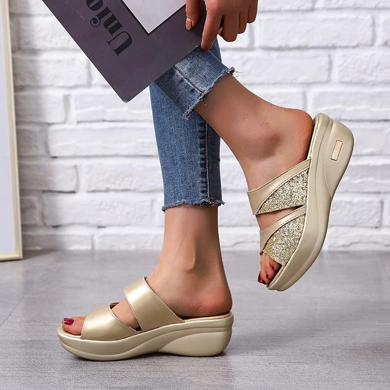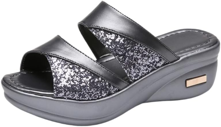 Women's large-size retro slippers with sequin design, lightweight, comfortable, breathable and anti-slip.