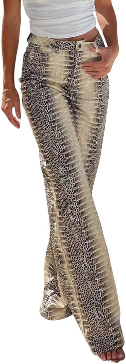 Upgrade your everyday denim collection with these trendy women’s leopard jeans, designed for fashion lovers who crave both comfort and confidence. Made from a soft blend of 97% cotton and 3% polyester, these leopard print jeans for women and cheetah print pants deliver the perfect combination of flexibility and durability. The fabric is slightly stretchy and designed to be smaller at the waist and wider in the leg, creating a flattering shape that perfectly highlights your curves. Whether you choose leopard pants women, animal print jeans for women, or cheetah jeans, these bottoms will instantly elevate any outfit.Featuring a high-rise fit, secure zipper and button closure, and two back pockets, these leopard print pants for women add both functionality and Y2K-inspired style. The frayed hem detail and wide-leg silhouette give off a chic, modern vibe that looks great with crop tops, blouses, or sweaters. Available in multiple colors, including blue leopard jeans, black, and grey, these leopard wide leg jeans and cheetah print jeans women are ideal for any mood or occasion.Perfect for all seasons, you can pair these animal print pants with sneakers for a casual weekend look, heels for a night out, or boots for a bold streetwear vibe. Whether you’re styling them for a day at the office, travel, concerts, or brunch dates, these printed jeans for women adapt effortlessly to your lifestyle. The stretch jeans for women design ensures ease of movement while maintaining their flattering shape wear after wear.Easy to care for — simply machine wash cold and dry naturally to keep your womens leopard print jeans looking new. Please refer to our size chart before ordering for the best fit. These cheetah pants for women, leopard jeans petite, and high rise straight leg jeans for women are must-have wardrobe staples that combine trend, comfort, and versatility. Embrace your wild side and make a bold statement with our leopard print denim pants — where classic jeans meet modern animal print style.