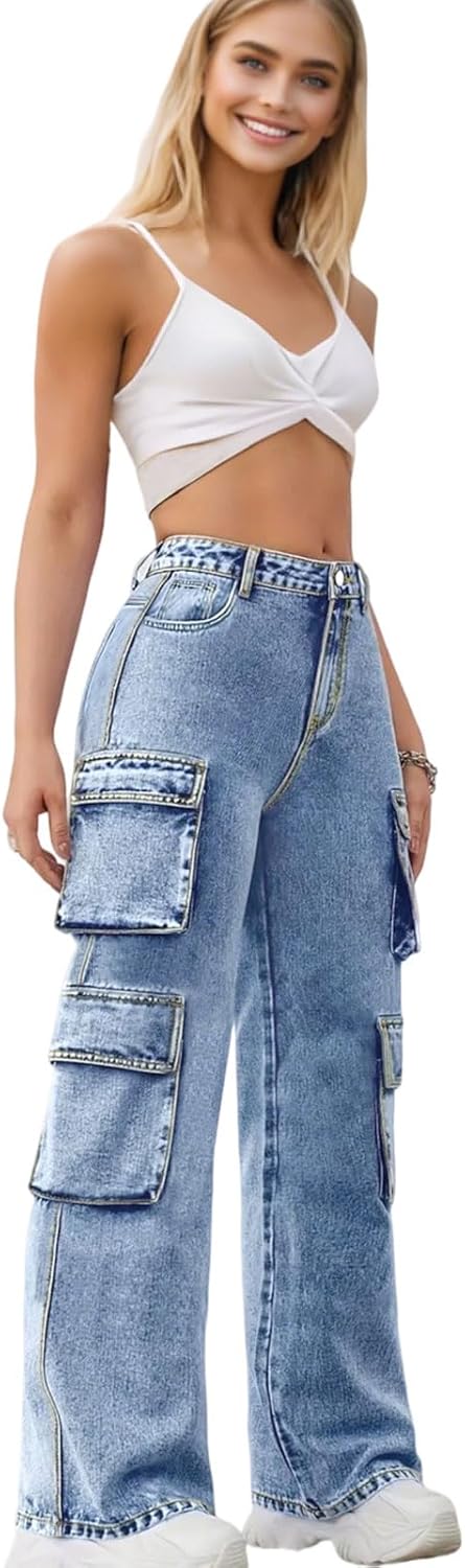 Plus size women's blue straight jeans are carefully crafted from high-quality stretchy denim fabric, featuring a high waisted design. These baggy jeans plus size seamlessly blend minimalism, casual comfort, modern fashion, and a hint of retro charm. (1xl、2xl、3xl、4xl、5xl)Size:plus size baggy jeansFeature: plus size jeans stretchyOverall: plus size straight leg jeansWaist circumference: plus size jeans high waistedLegs: jeans plus size womenClosing method: metal button and zipper closureProduct features:These plus size straight leg jeans for women offer a fresh interpretation of classic jeans, combining high waisted jeans for women tummy control with retro-inspired elements redefine the wide leg jeans women plus size style.Plus size wide leg jeans women wide leg jeans redefine classic Crafted to flatter with loose contours that offer both comfort and a relaxed, modern vibe, these stretchy jeans for women plus size feature a versatile silhouette that effortlessly transitions from casual outings to semi-formal occasions. we’re proud to offer these plus size straight leg jeans women.Plus size high waisted jeans women plus sizeThe thoughtfully designed on the back pockets adds unique decorative charm while echoing retro denim aesthetics, plus size stretchy jeans for women enhancing the minimalist design with subtle detail.Plus size wide leg jeans for women, high waisted, and ensure all-day comfort, while clean lines and simple stitching maintain the understated elegance of the jeans baggy jeans plus size.