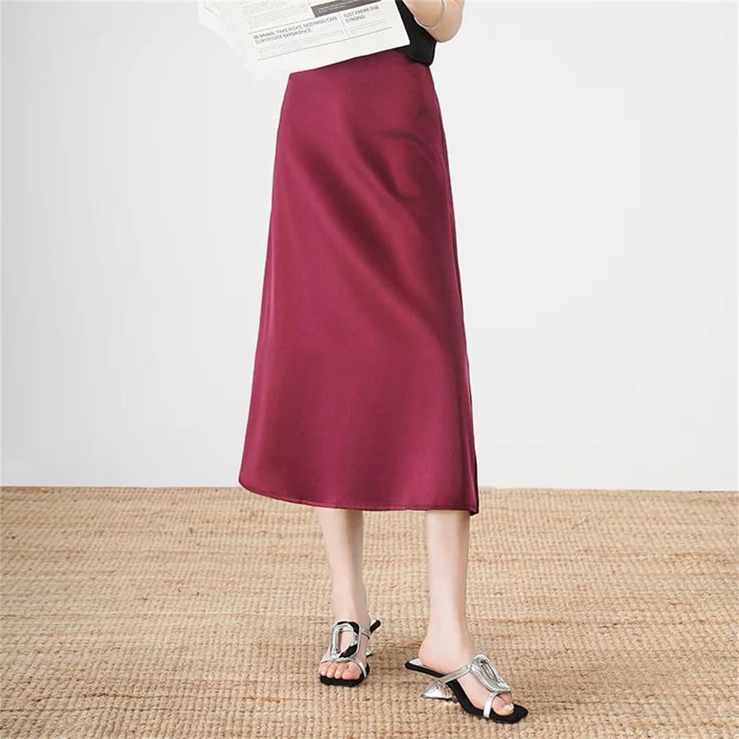 Designed for everyday versatility, these satin skirts balance a polished, elegant look with all-day comfort. The smooth, lightweight, flowy fabric drapes beautifully, transitioning seamlessly from office commute and workwear to weekend outings and casual daily wear. The high waist and elastic waistband ensure a flexible fit, while the classic A-line and fishtail silhouettes in midi and maxi lengths are easy to pair with blouses, sweaters, or tees for any occasion.Experience effortless style with these practical satin skirts, crafted from a silky, soft material that offers a flattering drape. Featuring a comfortable elastic waist, they are perfect for busy schedules, easily layered in winter or worn alone in summer. Whether dressing up for office days, business meetings, or evening events, or dressing down for errands, these side slit and solid color skirts provide a reliable and chic wardrobe staple for spring, summer, fall, and winter wear.
