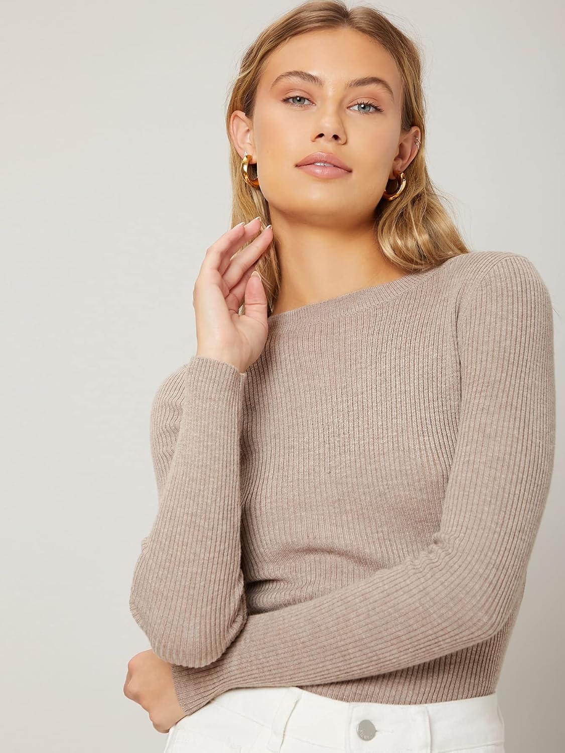 SBust : 24.4 inchCuff : 2.8 inchLength : 22.8 inchShoulder : 11.8 inchSleeve Length : 23.6 inchMBust : 26 inchCuff : 3 inchLength : 23.6 inchShoulder : 12.2 inchSleeve Length : 24 inchLBust : 27.6 inchCuff : 3.1 inchLength : 24.4 inchShoulder : 12.6 inchSleeve Length : 24.4 inchColor: Mocha Brown,Beige,Black,Light GreyStyle: Basics,CasualPattern Type: PlainDetails: Rib-KnitType: Basic TopsNeckline: Round NeckSleeve Length: Long SleeveSleeve Type: Regular SleeveLength: RegularFit Type: Slim FitFabric: High StretchMaterial: Recycled Polyester,PolyesterComposition: 50.1% Polyester,25% Acrylic,18.9% Nylon,6% WoolCare Instructions: Machine wash or professional dry cleanSheer: No