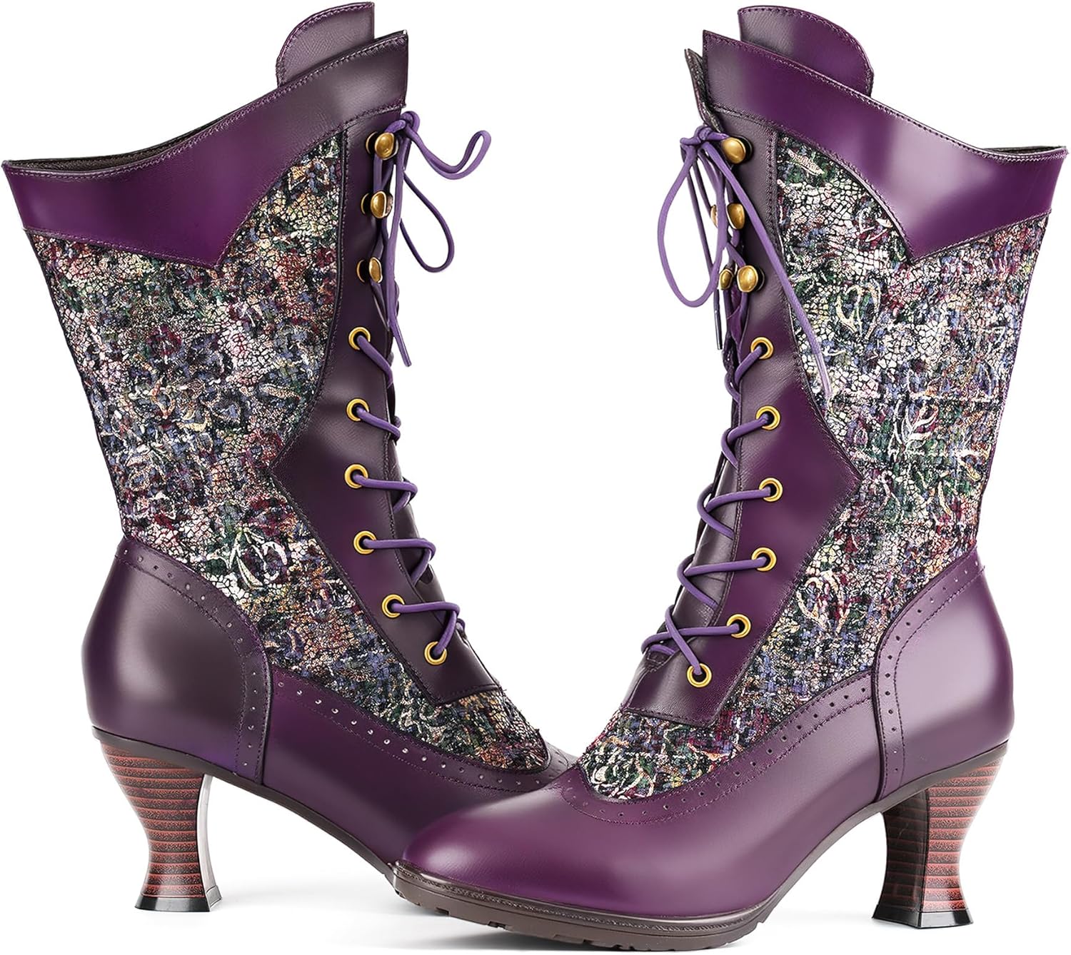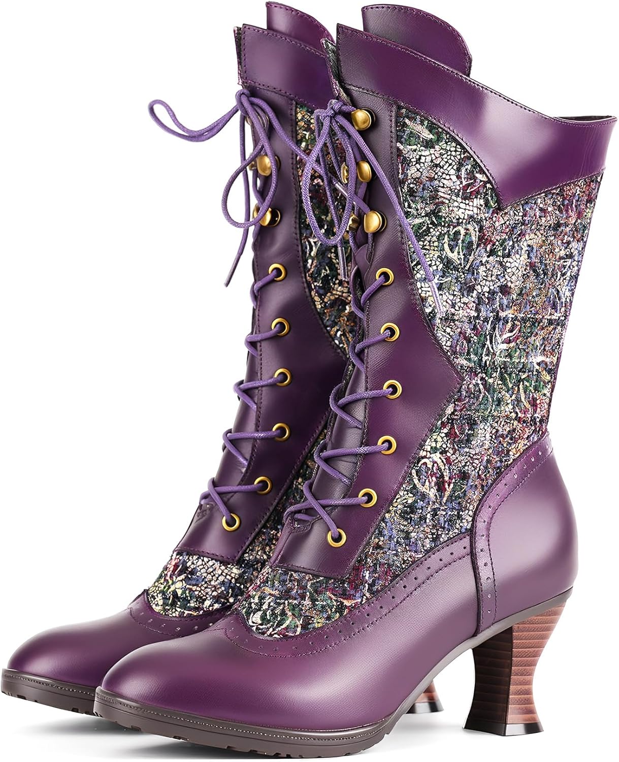 MetCandy | A Symphony of Color and Craft: The Victorian Orchid Collection Step into a world where vintage elegance meets playful artistry with the MetCandy Victorian Mid-Calf Boots. Designed for the woman who views her footwear as a canvas, these boots blend soulful bohemian textures with the structured grace of a 19th-century silhouette. The Brilliance of Detail The defining feature of this collection is the meticulous interplay of color and texture. The Royal Purple: This edition is for the bold. It features our most vibrant rainbow contrast stitching, where every needlework line bursts with color against the regal violet leather. The shimmering orchid tapestry panels are exceptionally rich in detail, offering a garden of colors that bloom with every step. The Midnight Black: A sophisticated tribute to Steampunk romance, blending deep raven leather with darker floral motifs for a look of mysterious, timeless elegance. Artisan Engineering for Winter Warmth At MetCandy, we believe beauty should be comfortable. Warmth: A premium layer of thermal short plush ensures your feet remain cozy and dry, even when temperatures drop. Stability: The beautifully sculpted flared spool heel, accented with a rustic wood-grain finish, provides a broad and stable base for confident city strolling. Product Specifications: Brand: MetCandy Material: Premium Burnished Leather & Vibrant Orchid Tapestry Heel: 2.5-inch Artistic Flared Spool Heel Lining: Thickened Thermal Short Plush (Winter-Ready) Closure: Full-Length Lace-Up with Vintage Metallic Hardware Signature Feature: High-Contrast Rainbow Stitching (Especially prominent on Purple version)
