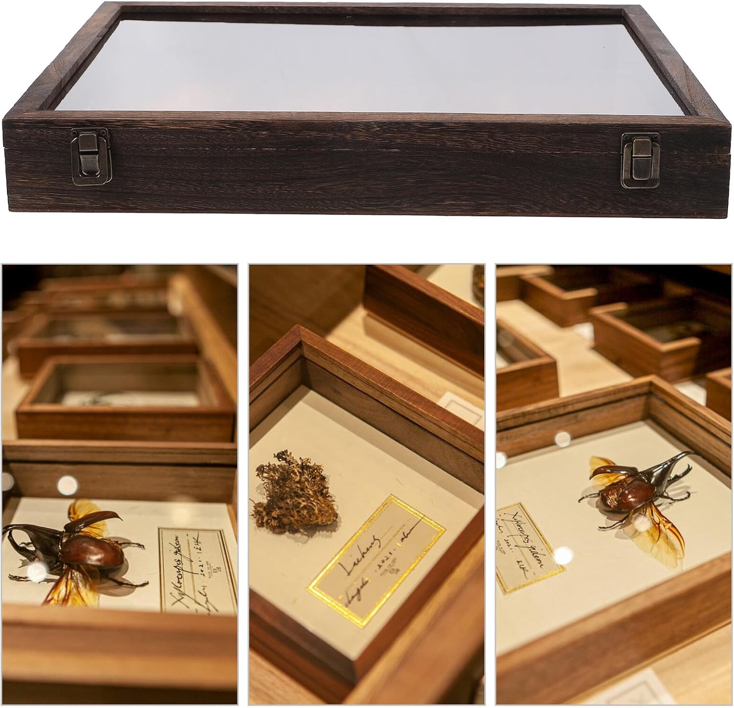 Package List 1 x Display Case Features - Note: There are differences in lock styles entomology display case. -Product Info:Specimen display box -Material:Wood - Size: 45.00X32.00X6.00cm/17.68X12.58X2.36in -Color:Brown -The sleek and elegant frame design of this box makes it suitable for various settings, adding a touch of sophistication to any environment specimen display -Made wood with fine finish, this display box is built to be sturdy and case -The transparent cover provides effective protection against and damage, ensuring that your specimens remain in pristine condition butterfly specimen case bag -With a large capacity, this box can accommodate multiple specimens, allowing you to create a diverse and captivating display butterfly specimen -With its versatile design, this box is perfect for showcasing a variety of specimens, including , butterflies, and plants wood specimen display holderGoods Information specimens The Wood Butterfly Specimen Display Box is a versatile and product.entomology display has a large capacity to accommodate multiple specimens, providing a rich display effect.butterfly specimen photo frame It is designed to showcase specimens, butterfly specimens, and plant specimens, catering to different collection needs.wood specimen display holder The sleek and elegant design makes it suitable for placement in homes, offices, and other spaces, adding a decorative touch. Display Case The transparent cover the specimen