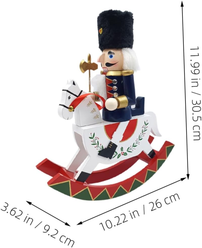 Package Include 1 x wooden horse nutcracker Features -Ideal holiday giving: this ornament makes an excellent christmas present, bringing warmth, joy, and festive cheer to your loved ones nutcracker rocking puppet -Material:Wooden -Product Info:Nutcracker ornaments -Beautiful christmas decoration: this rocking horse nutcracker is a beautifully crafted decoration that adds a festive touch to your christmas celebrations nutcracker statue decor -Versatile placement: suitable for desktops, bookshelves, and other surfaces, this piece brings a festive and colorful touch to any space - Size: 30.50X26.00X9.20cm/11.99X10.22X3.62in -Unique soldier: featuring a royal soldier design, this ornament stands out with its unique and captivating appearance vintage christmas nutcracker -Sturdy quality: each nutcracker is carefully handmade, ensuring attractive and intricate detailing in every piece nutcracker wooden figures - Goods Informationxmas nutcracker Their intricate designs and festive colors make them a standout addition to any holiday display, ensuring your home is filled with seasonal cheer.xmas nutcrackers pendant Use them as part of your xmas nutcracker collection or as unique Christmas tree hanging decor.xmas themed nutcracker figure These nutcracker hanging decorations are a delightful way to celebrate the festive season