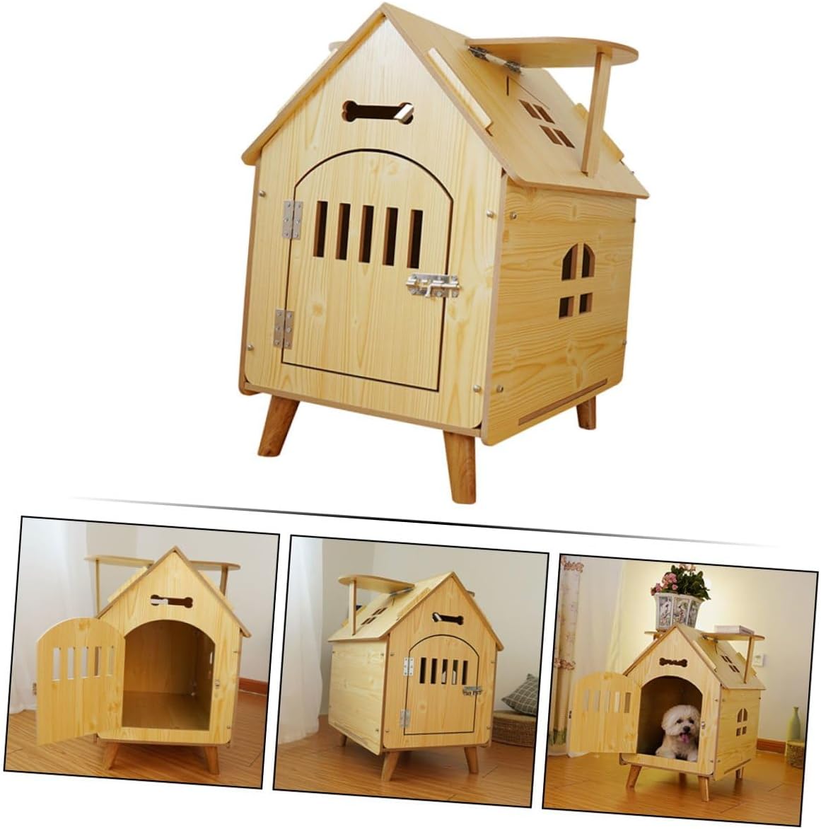 Package List 1 x Wooden Dog House Features - Material: Wood. - Size : Approx. 52.00X51.00X40.00cm/20.44X20.04X15.72in. -Product Info:Wooden Dog Hostel - ColorBeige - You can put it on the floor anywhere as you like, or for outdoor activities dog house outside. - The unique house shape attracts your pet's attention to sleep and rest in it dog house wood. - A practical and adorable pet house for both cats, dogs or other pets dog house outdoor. - It ensures your pets good sleep, and better daily activities dog kennel outdoor dog. - Large space, ventilated and not , let your pet have a breathable and comfortable living space outside dog kennel.Goods Descriptiondog kennel outdoor dog You can put it on the floor indoors or outdoors.kennel dog This item is a pet house, adoption of premium and durable wood material.dog kennel outdoor Your pet will have a good environment for resting.dog kennel outdoor dog house The pet house is using unique shape and fine craftsmanship