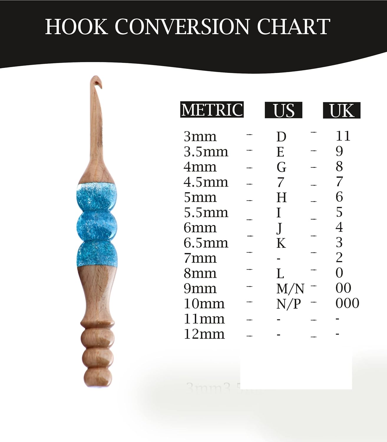 Wooden and Resin mixed crochet hook for knitting and crocheting. Amazing crochet hook knitting needle. Yarn bowl hook for knitting and crocheting needles yarn hook. Wooden ergonomic soft handle crochet hooks. ABOUT PRODUCT -Dimension-Product size Length Remain Constant at 7" Inches. Which ensures easy handling while knitting. The crochet hooks come in different sizes, from 3 to 20 mm.The hook head of the crochet hook is not sharp.crochet hook knitting needles have a nice , comfortable point at the curve of the hook , helping them go throw the loops of the yarn easily .Easy identify- Sizes were marked in mm clearly marked on the hooks.Smooth shaft- Crochet hooks knitting needles are smooth, as they barely snagged the yarn.Uses-Our crochet sets are used to make pillowcases, pet clothing, hats, towels, hairpins and many other purposes.Best Choice - This will be a great choice for Christmas, Thanksgiving, Mother's Day, birthday or many occasions.How to take Care of this amazing Crochet hook –Wipe the product with a wet cloth instead of washing.Wipe away the dust regularly.Polish the wood time to time.For premium finish use Natural Beeswax Polish.ABOUT RESIN - Resin crochets are in trend because they are lightweight and easy to knit while being convenient to hold. Plus, they are available in different sizes, so you can pick as per your project. Someone who works more with natural fibers should definitely go with resin hooks.