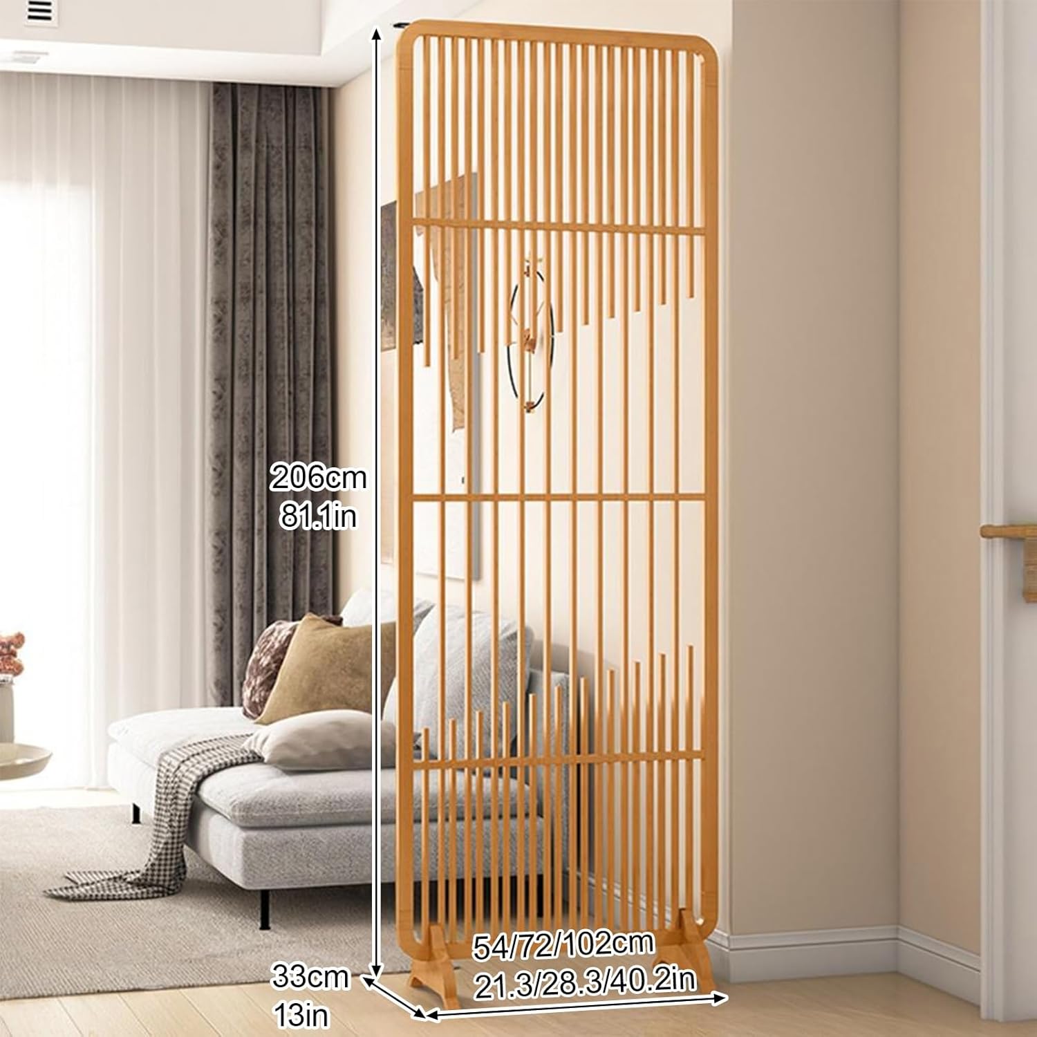 Transform your living space with our wall-mounted room divider, designed to enhance privacy while elevating your décor. This versatile divider is perfect for creating a cozy reading nook, defining workspaces in your home office, or separating areas in an open-plan living area. Crafted from sturdy wood, it features a natural grain that not only enhances its aesthetic appeal but also ensures strong load-bearing capacity and long-lasting durability. The traditional mortise and tenon joint technology provides a stable structure with tight, natural joints, resulting in a visually pleasing finish. The sleek, streamlined base adds both stability and an artistic touch to the overall design. With its simple elegance and clean, modern lines, this room divider seamlessly blends into any environment, making it suitable for both commercial and residential spaces. It’s not just an indoor solution; it’s also ideal for outdoor locations such as scenic spots and exhibits, showcasing its high practicality. Product specifications: - Name: Wall Room Divider - Material: Wood - Style: Chinese - Construction: Mortise and tenon joint - Applications: Living room, bedroom, entryway, hotel, office - Package Contents: 1 Wall Room Divider Please ensure the floor is level before installation to prevent tilting and maintain stability. Elevate your space with our stylish and functional room divider today!
