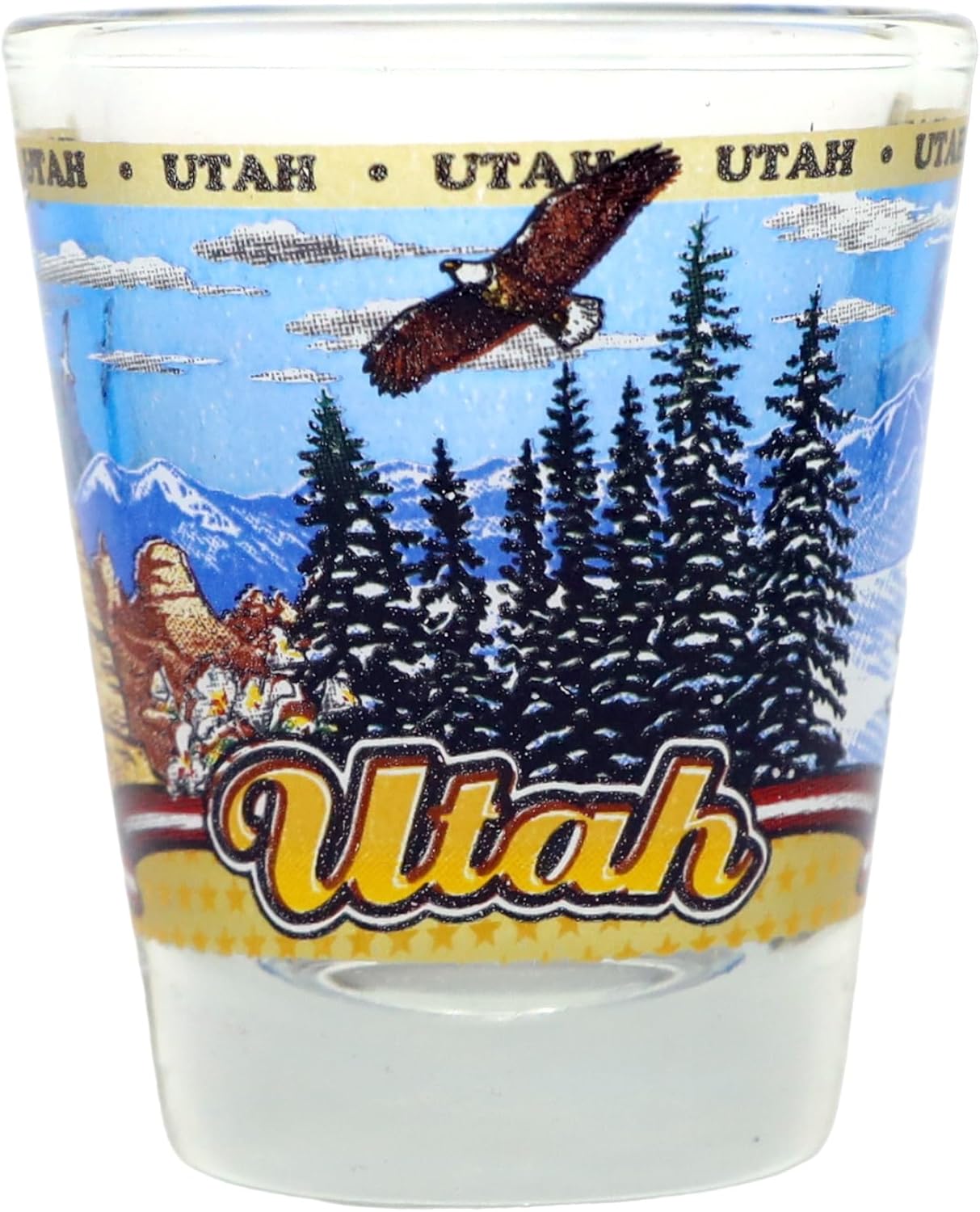 Here is a very rare and hard to find souvenir collectible Utah United States USA Souvenir Boxed Shot Glass Set (Set of 6). It is a 5x6cm style shot glass boxed set, each glass measuring 2.25 inches tall and 1.8 inches in diameter.