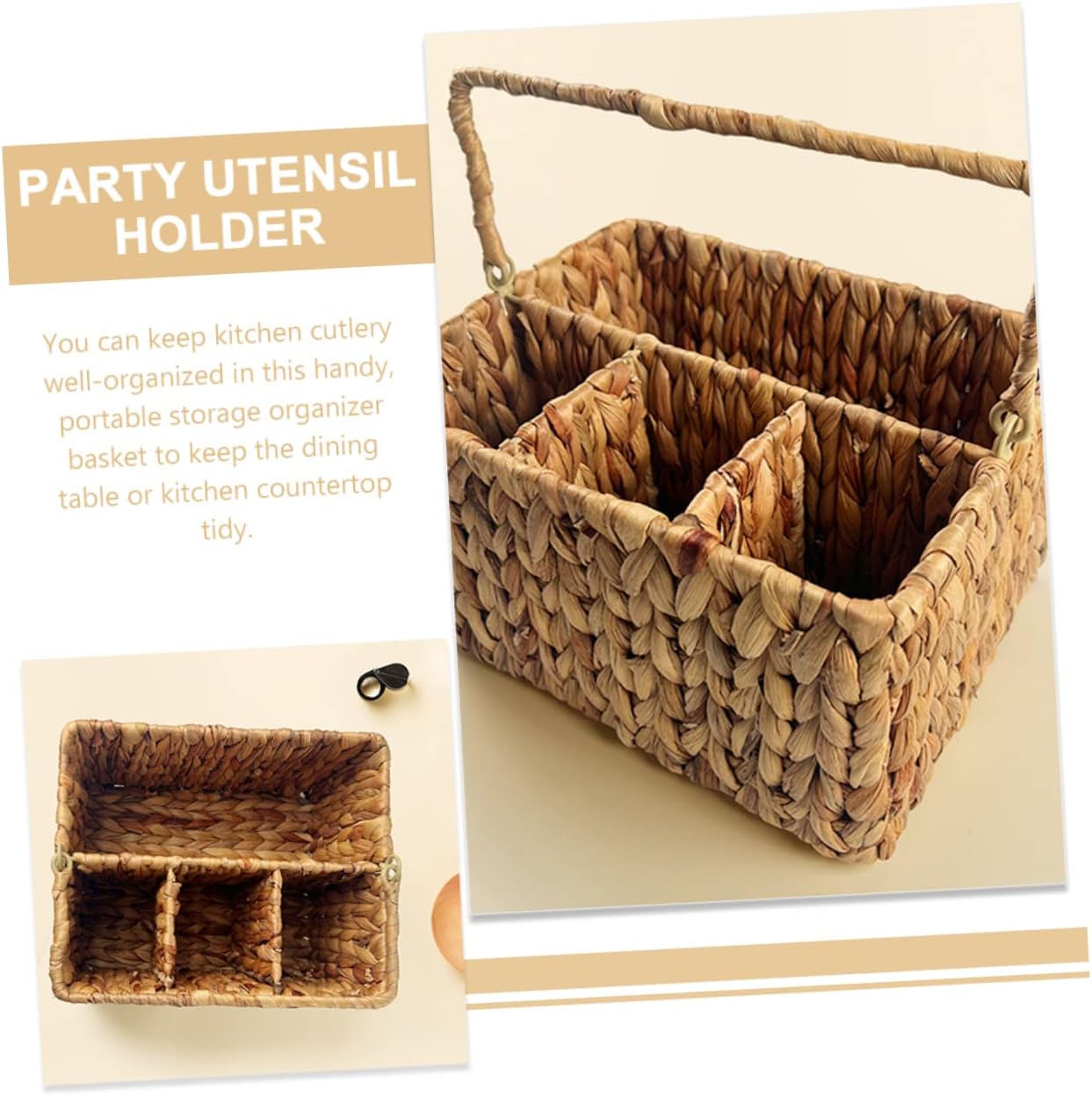 Package Include 1 × woven cutlery basket Features -Size:26.00X20.00X15.00cm/10.22X7.86X5.89in small woven basket -Color:Light Brown table organizer basket -Material: kitchen basket for storage -Made of material, the basket is for long term use, perfect for holding all of your crafting supplies - markers, crayons, scissors, colored pencils, stickers, paints, and more kitchen storage basket. -You can send this great housewarming present to your friends, and they will like this basket serving cutlery holder. -It is also a to put some small tools and makeup in it divided basket. -Wear-resistant, sturdy and creative multi-grid design, all advantages are in this basket kitchen utensil holder for countertop. -The basket can be used not only for storage of cutters and forks in the kitchen, but also for storage of washing in the bathroom kitchen utensil holder.Goods Informationstorage for organizing This is a multi-function storage basket, made of material, wear-resistant and sturdy, and convenient, and can serve you a long time.Cutlery Storage Basket And this basket can hold your cutlery, keys, remote controller, and other sundries, which use