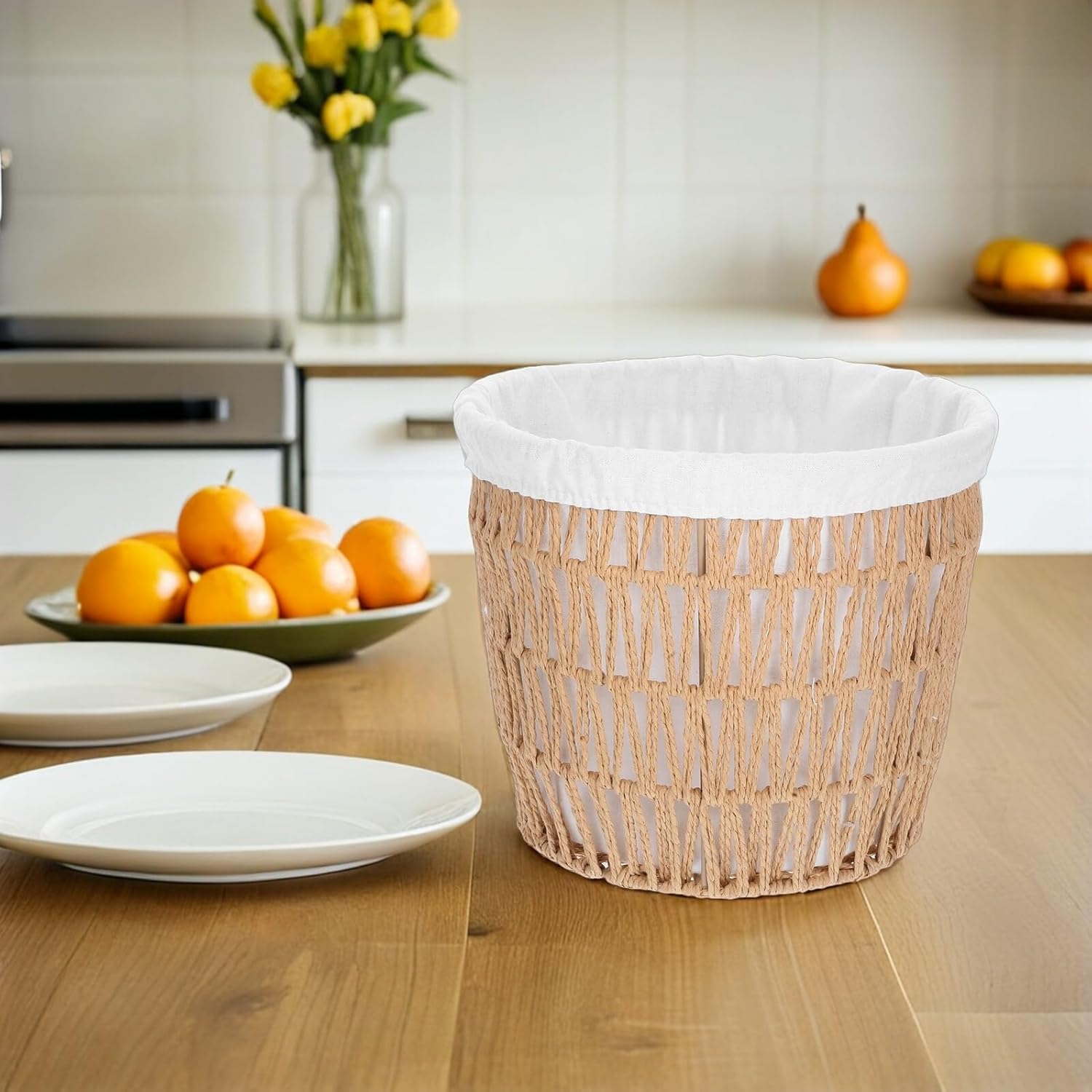 Package Include 1 x bread basket Characteristics -Paper rope construction: made from paper rope, this basket is safe and built to last wicker picnic basket -Size:26.00X26.00X22.00cm/10.22X10.22X8.65in -Multifunctional design: practical for bread, fruits, or household items, it serves as a versatile storage wicker picnic organizer -Material: rope -Protective cotton liner: the safeguards bread, preserving its freshness and enhancing your dining experience wicker bread basket -Product Info: European-style bread basket -European charm: this basket's artisanal design brings a touch of sophistication to your kitchen decor wicker storage basket -Decorative and practical: its europeaninspired aesthetic makes it a stylish addition to your home and a thoughtful favor choice decorative bread basket -Color:BeigeGoods Descriptionkitchen wicker basket Use it to serve bread during meals or as a decorative organizer for your kitchen.hand-woven rope storage basket Its sturdy construction and elegant design make it a practical and stylish choice for any household, ensuring your items are always neatly arranged.shelf wicker basket The handwoven paper rope wicker basket with a cotton liner is a versatile storage solution for your home