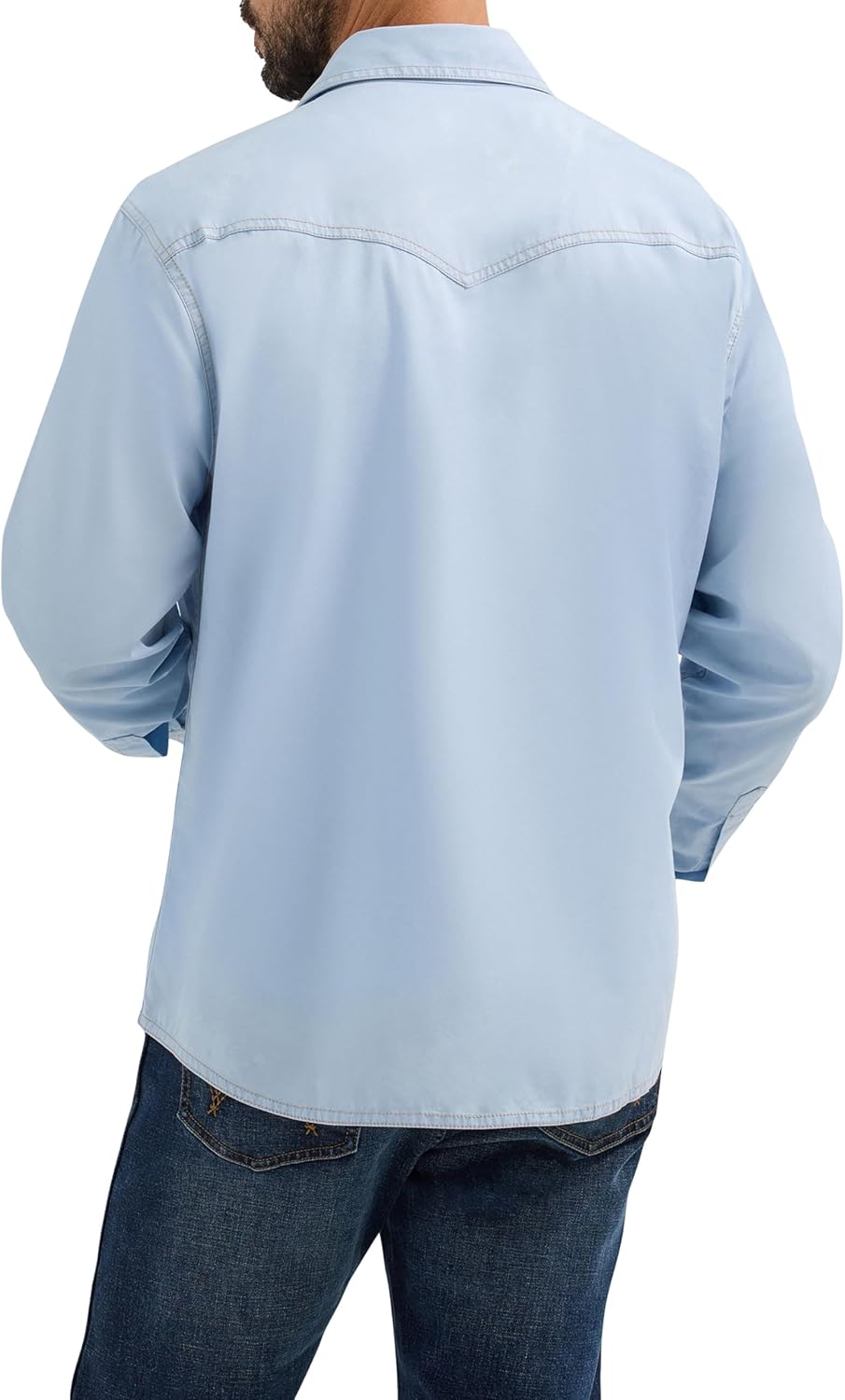 With no shortage of Western authenticity, our men's Wrangler Retro premium contrast trim western snap flap pocket solid shirt represents a true original in the American west. It's crafted from cotton for nonstop comfort. This contemporary take on the classic western snap shirt comes with all the iconic details you know and love, including two snap flap pockets with the 'W' stitching, two snap cuffs, and a full snap closure. Tucked or untucked, this long-sleeve snap shirt looks great with
