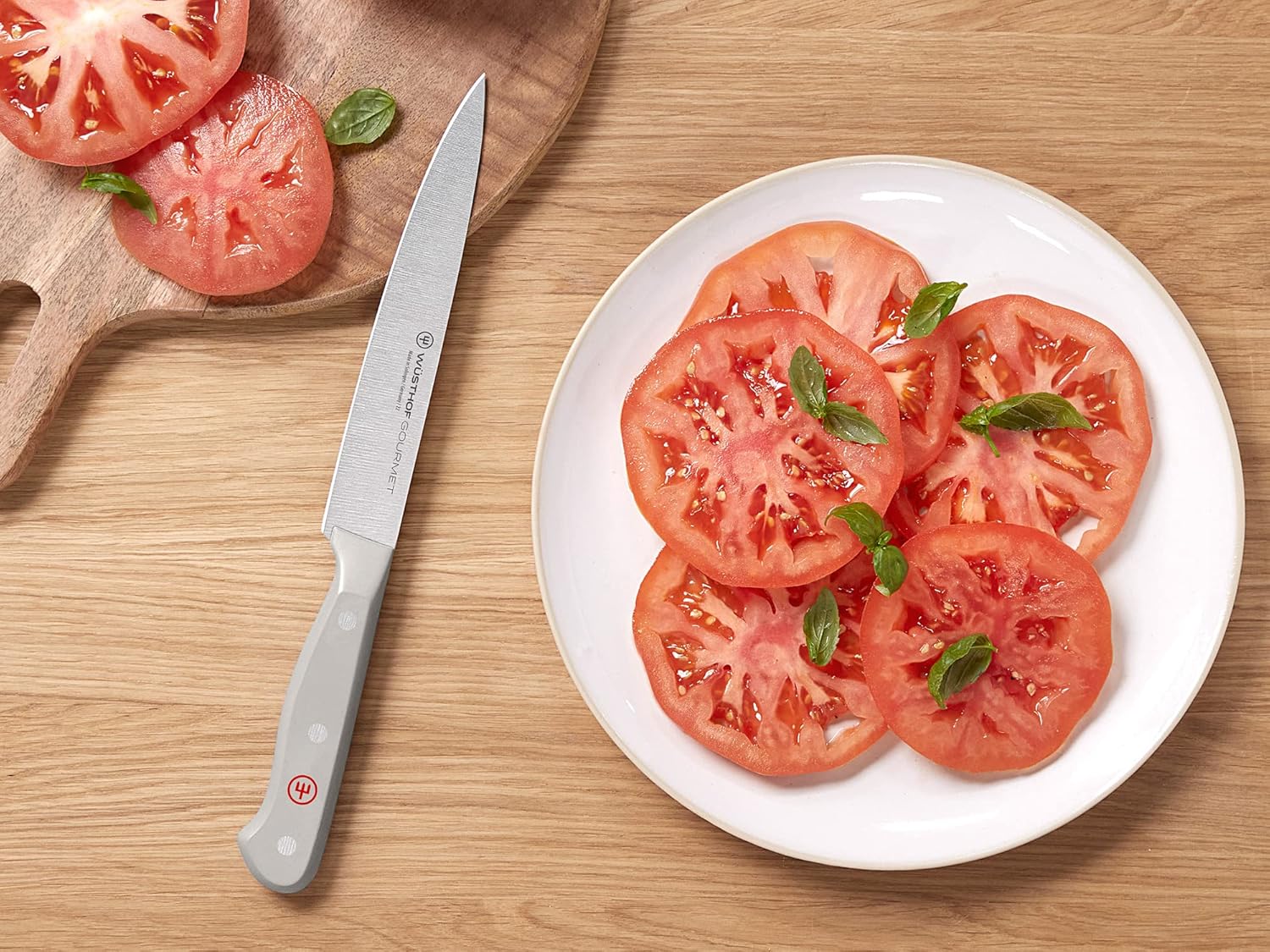 One of the most trusted names in cutlery, Wüsthof offers a versatile utility knife for a wide variety of cutting tasks. The strong, long-lasting blade with a V-ground edge is precision-tapered from bolster to tip to maintain its shape and hold its edge. The blade is laser-cut from a single piece of high-carbon steel and easy to sharpen. Full tang adds weight and balance. More durable and sanitary than wood, the high-impact, molded synthetic handle is available now.