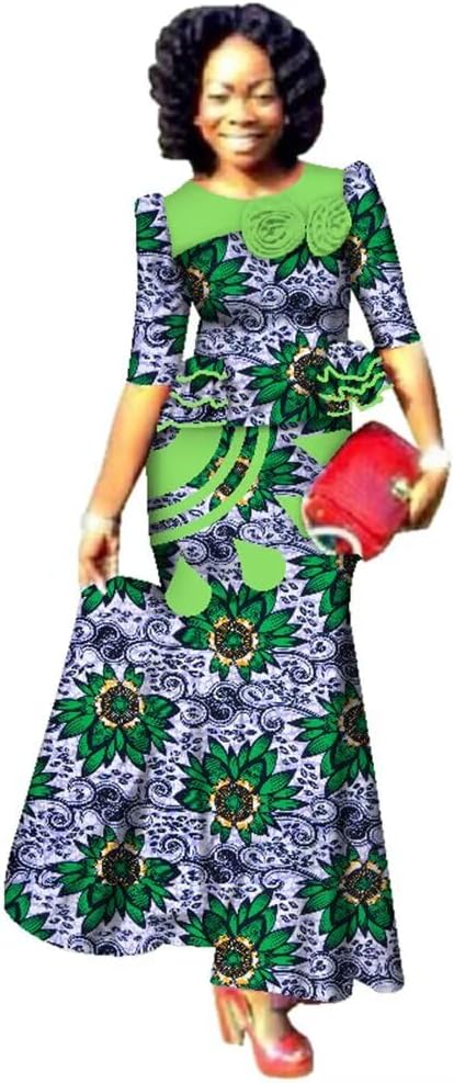 • Features: African clothes for women,fashion 2 piece set outfits for women,african floral print,2 piece outfits,half sleeves,classic O-neck,flower and ruffles decoration,ruffles tops and long skirts,make you more beautiful, fashion and elegant.
