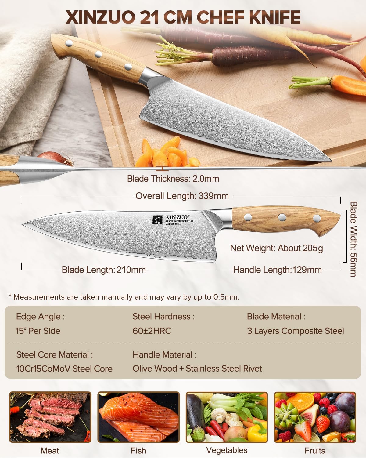 | Handle Material | Olive Wood, Stainless Steel Rivet |