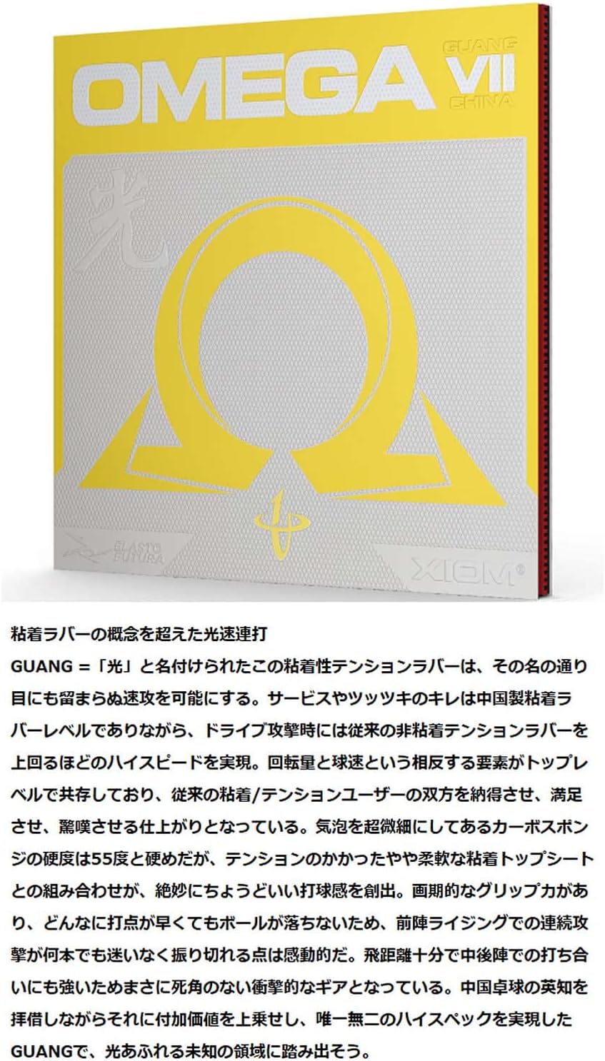 High speed continuous hit beyond the concept of adhesive rubber, GUANG = "Light", this adhesive tension rubber is not just what its name suggests it can be. Service and Tsuzuki are high speed than Chinese sticky rubber. Contrasting elements of rotation and ball speed are co-existed at the top level, resulting in a finish that convinces, satisfies and surprises both traditional adhesive and tension users. Although the ultra-fine carbon sponge has a hardness of 55 degrees, it is somewhat hard, but it is combined with a tensioned, slightly flexible adhesive top sheet to create an exquisitely just the right amount of hitting feeling. With its groundbreaking grip and no matter how fast the ball will fall off, so you will be impressed by how many continuous attacks with front facing rising will be able to sway without losing anything. It has plenty of distance and is strong enough to hit the middle and back of the team, making it an impact gear with no blind spots. Step into the light road area with GUANG, which has become one of a kind high spec by renting the wisdom of Chinese Table Tennis and adding value to it.