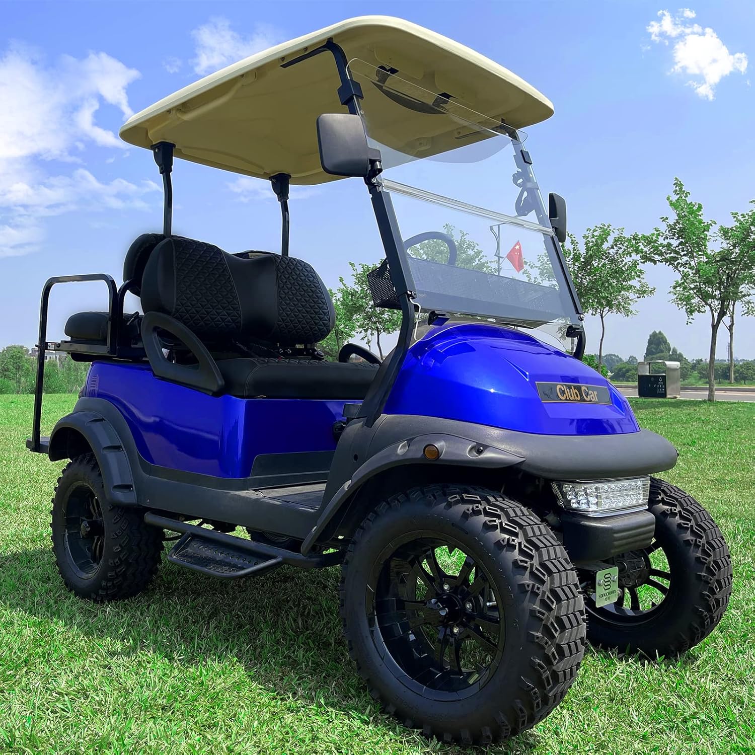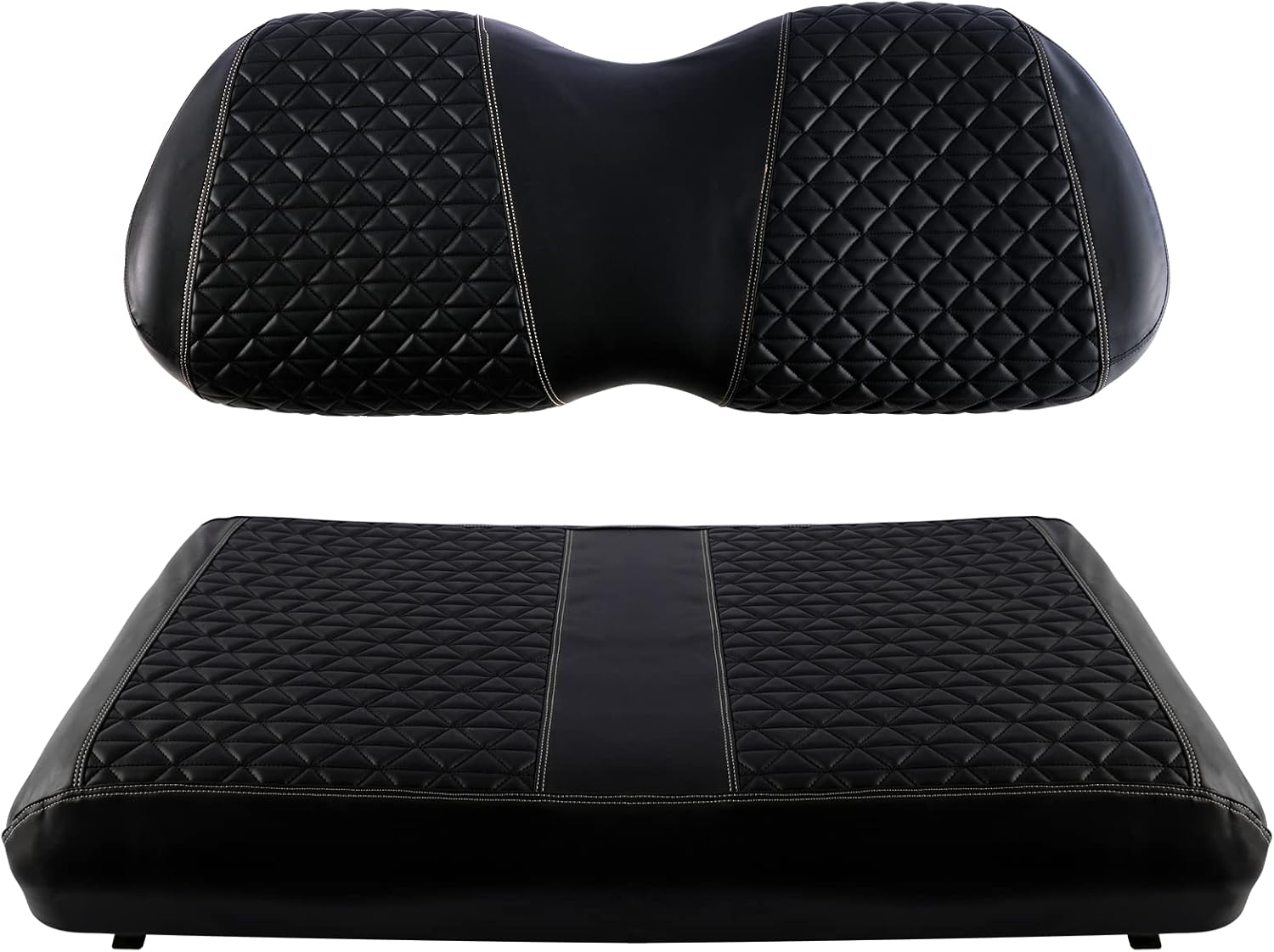 Product description: Product name: Club Car Precedent Diamond Leather Front Seat Covers, also suitable for club car onward/tempo Position: Front Material: Vinyl Artificial Leather Pattern: Diamond triangle shape Package Included: 1*backrest cover Size: 38.5 x 15.5 x 4.5 inches 1*bench cover Size: 39 x 20 x 4.5 inches 1* installation instruction Brand: XUANYUDG0769 Purpose: 1.Protect seat cushion from being dirty,messy and damage 2.Prolong the usage life of the rear seat kit 3.Renew and upgrade your golf cart 4.Compared with the mesh seat covers, these leather seat covers is easier to clean and stay warmer, more suitable for four seasons Features: With adjustable straps and buckles, no need to use stapler. Customers Service: If there is any query, please feel free to contact us and we will try our best to help you.