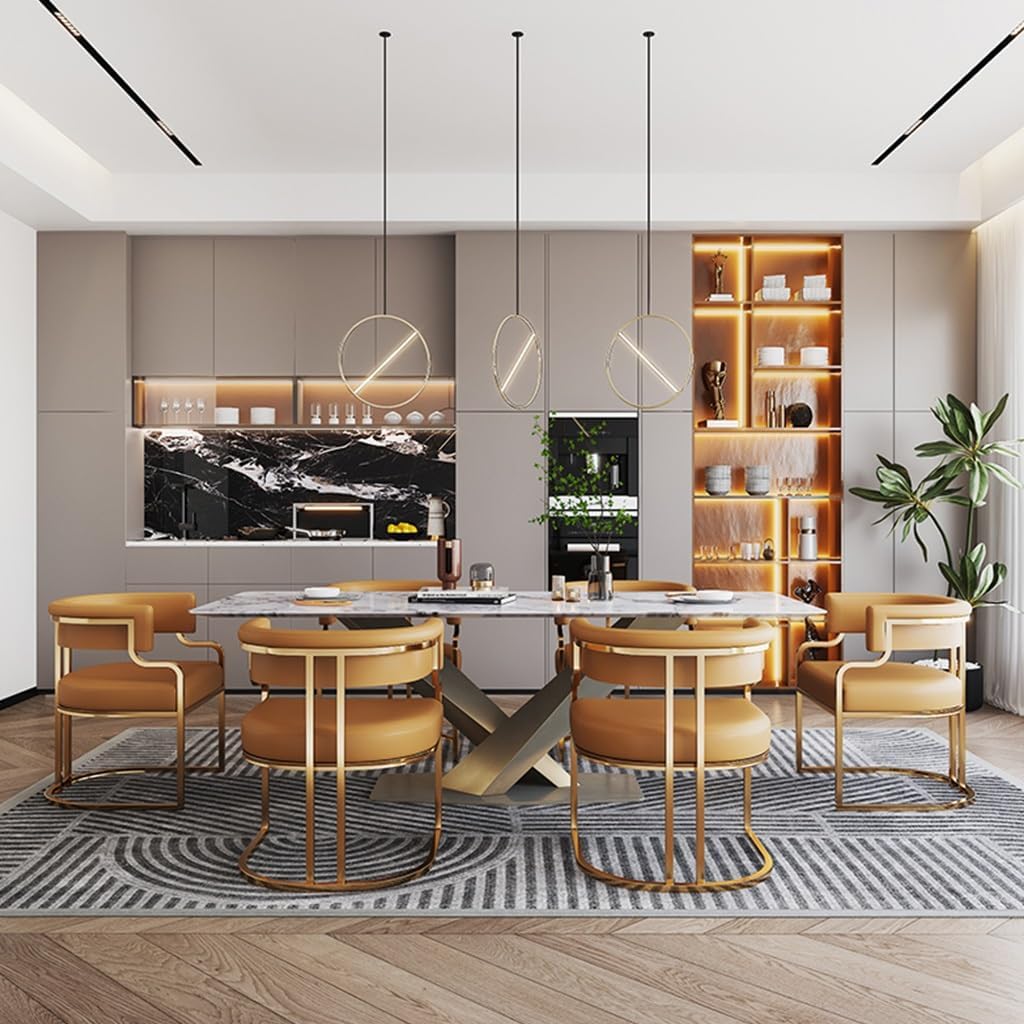◼ Specifications:Name: Modern ChairMaterial: Faux Leather, Sponge,SteelSize:56 x 52 x 72.5cm /22 x 20.4 x 28.5 Inch◼ Package Includes: 1 x Chairs ◼Please choose the right chair for your height and weight.(The dimensions of the product are for your reference)◼ Tip:◆ We only sell Chair, not including other decorations.◆ Due to problems with light, display, etc. the color difference of the product is normal.◆ You don't have to worry about any after-sales problems. We believe that your satisfied smile is our motivation and we will try our best to meet your needs. If you have any questions about the product, please leave us a message and we will get back to you within 24 hours.tact us in time.