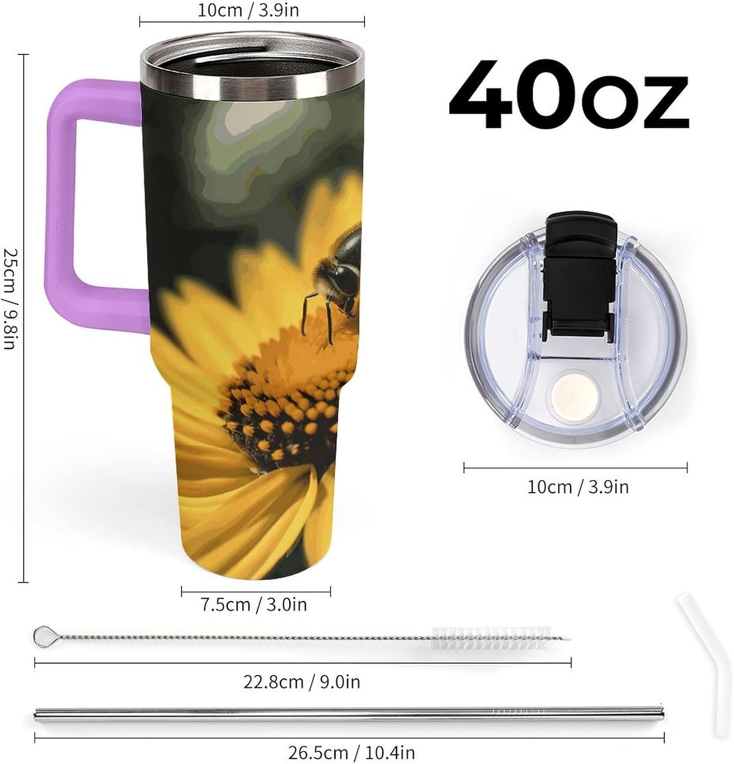 Crafted with 304 stainless steel, this Double Wall Vacuum Yellow Flower with Black Bee Travel Mug prioritizes both durability and safety. Its sleek design earns it the title of a Fashion Coffee Cup, complementing any setting from your kitchen counter to your car's cup holder. The Cupholder Friendly Double Wall Travel Cup shape ensures stability, even on bumpy roads, making it an ideal Travel Coffee Mug for those always on the move.This 40 oz Yellow Flower with Black Bee Stainless Steel Bottles is more than just a drinkware item—it's a lifestyle essential designed for modern living. As a Vacuum Insulated Tumbler, it leverages double-wall technology to keep your drinks hot or cold for hours, making it the perfect Insulated Coffee Cup for early mornings and late afternoons alike. The BPA-free lid with a stainless steel straw offers two convenient drinking options, while the leak-proof seal ensures peace of mind during your daily commute or outdoor trips.Whether you're heading to work, embarking on a road trip, or simply relaxing at home, this Large Travel Flask adapts to your needs. Its generous capacity eliminates the need for frequent refills, while the easy-to-clean interior and included brush simplify maintenance. Embrace the convenience and style of this Cute Travel Mug—a must-have for anyone who values functionality without compromising on aesthetics.Insulated Coffee Cup Travel Coffee Mug Vacuum Insulated Tumbler Cute Travel Mug Double Wall Vacuum Travel Mug Stainless Steel Coffee Mug Insulated Car Cup Stainless Steel Bottles Coffee Tumbler Vacuum Travel Mug Leak-proof Large Capacity Car Cup Keeps Cold or Hot Portable Coffee Cup Insulated Water Bottle Stainless Steel Water Bottles Fits in Any Car Cup Holders Large Capacity Metal Coldest Flask Reusable Mug with Straw or Leakproof Flip Lid, Keeps Drinks Cold Insulated Stainless Steel Cup Insulated Coffee Mug Thermal Cup Stainless Steel Tumbler Reusable Cup with Straw Leak