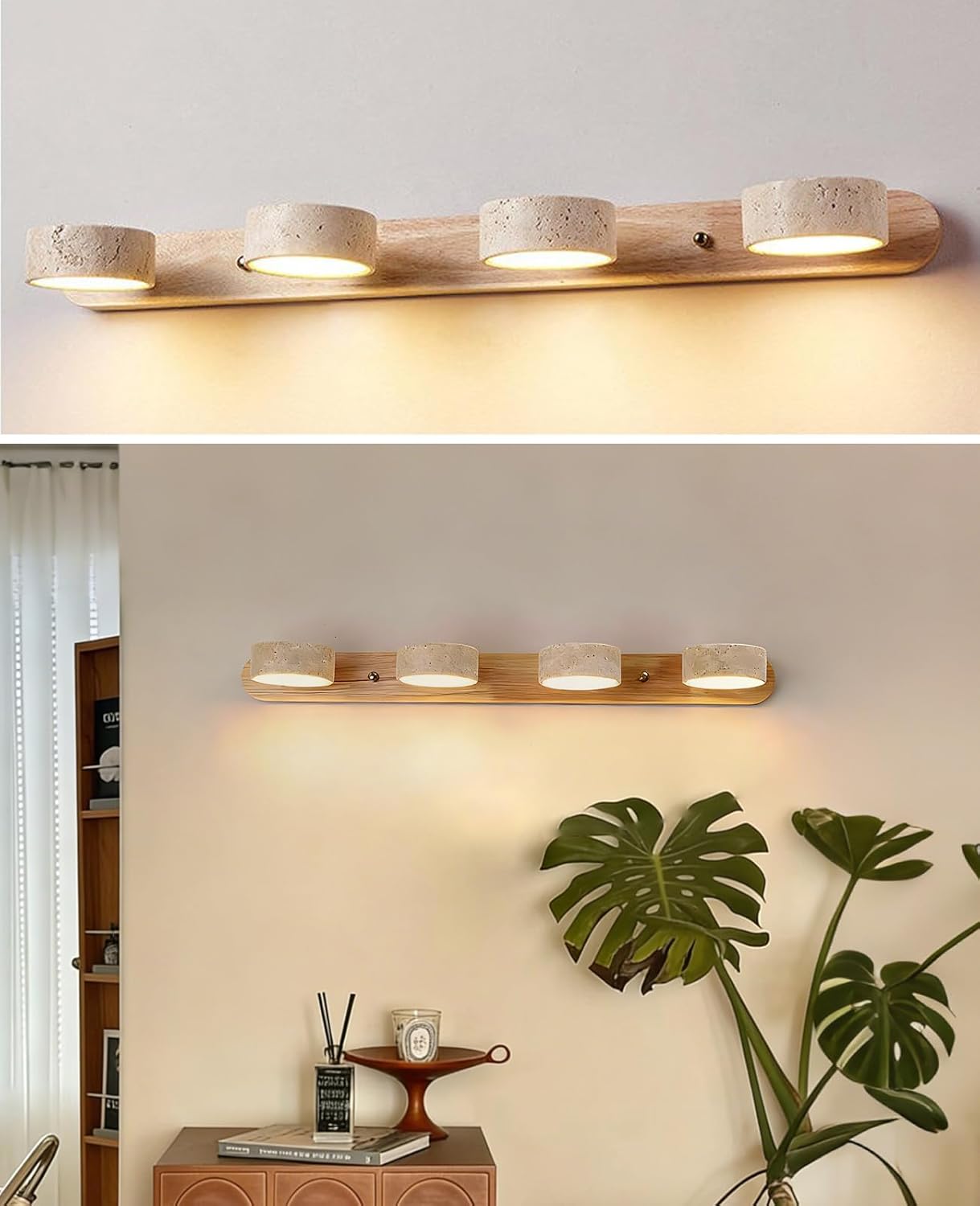 Assembled Dimensions: Stone Lampshade: 3.9" Diameter x 1.6" HeightRectangle Wooden Backplate: 19.69" Length x 2.4" WidthStyle: ModernColor: YellowMaterial: Stone + WoodBulb Type: LEDVoltage: 110VInstallation instructions:Open the package and check that all accessories are complete.Connect the power cable and ensure that it is correctly connected.After installation, turn on the switch to test whether the lamp works normally.Note:Be sure to cut off the power supply before installation to ensure safety.It is recommended to install by a professional electrician to avoid damage caused by improper operation.Clean the surface of the lamp regularly to keep it beautiful and bright.Packing list:1. Lamp body x 12. Install kit x 1