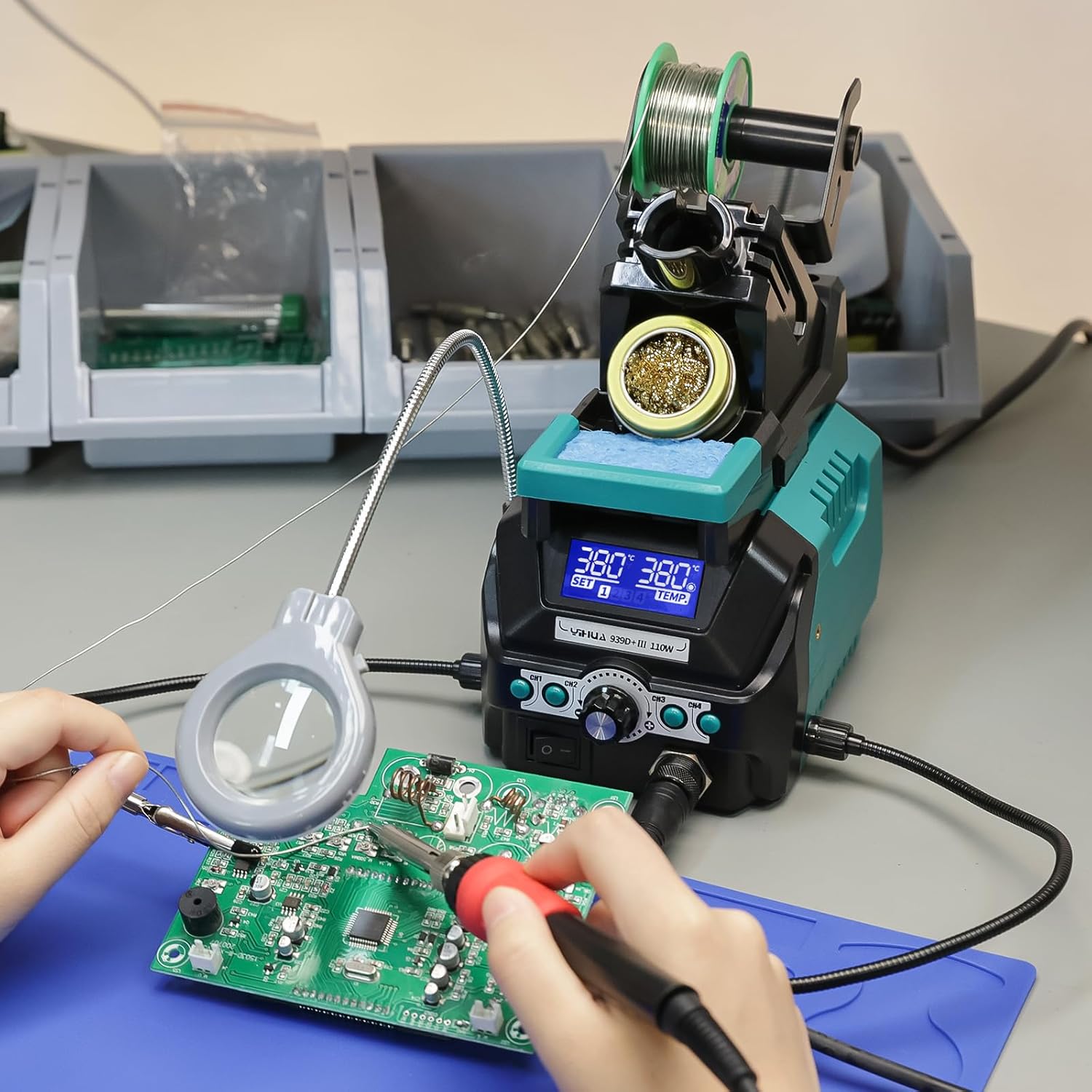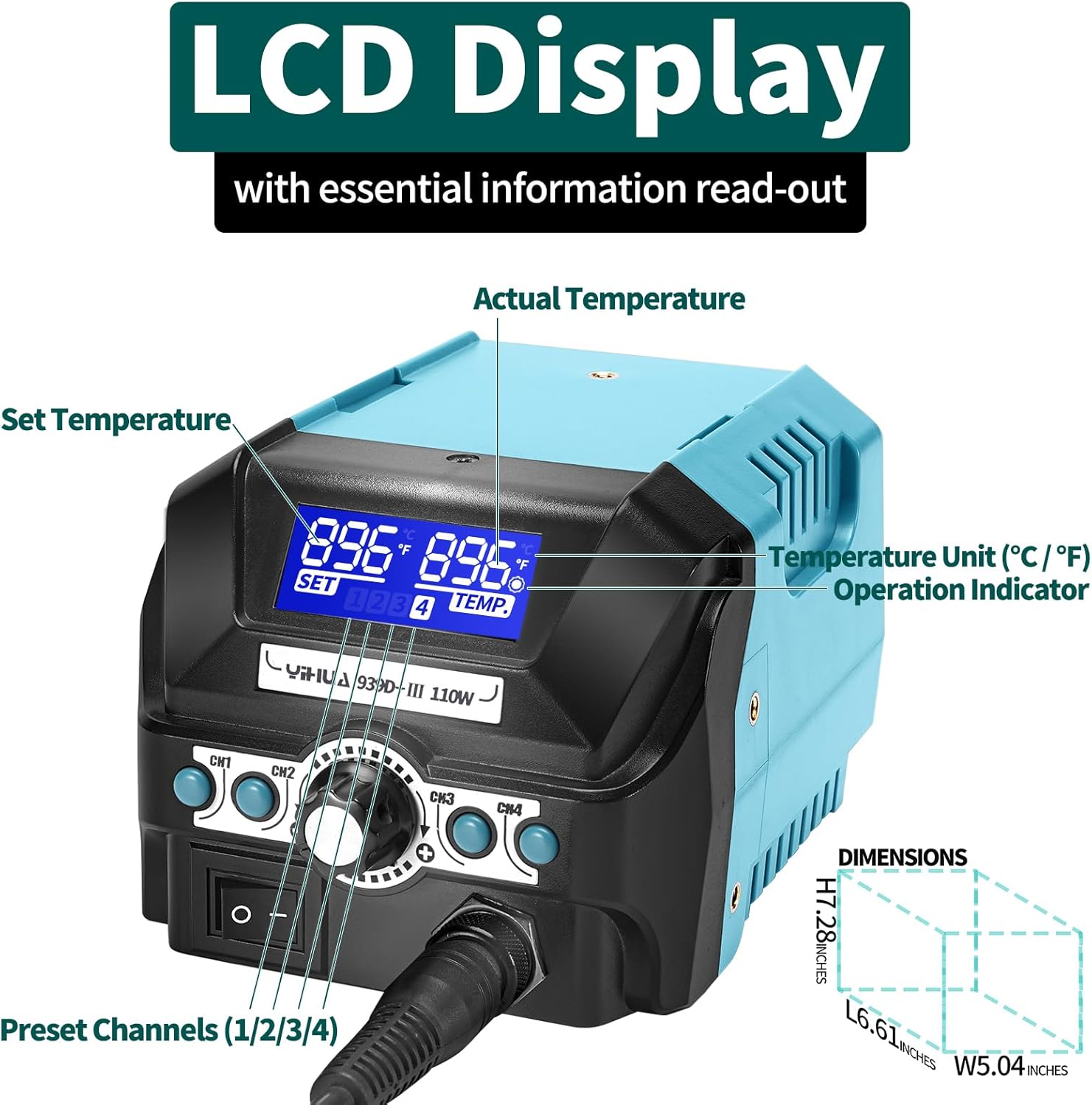 | Included Components | YIHUA 939D+ III Soldering Station Body, Iron, Roll of Lead-Free Solder Wire (35g), 3 Assorted Tips, ‘X-2’ Iron Holder System(with protective edge), User Manual, Helping Hands |