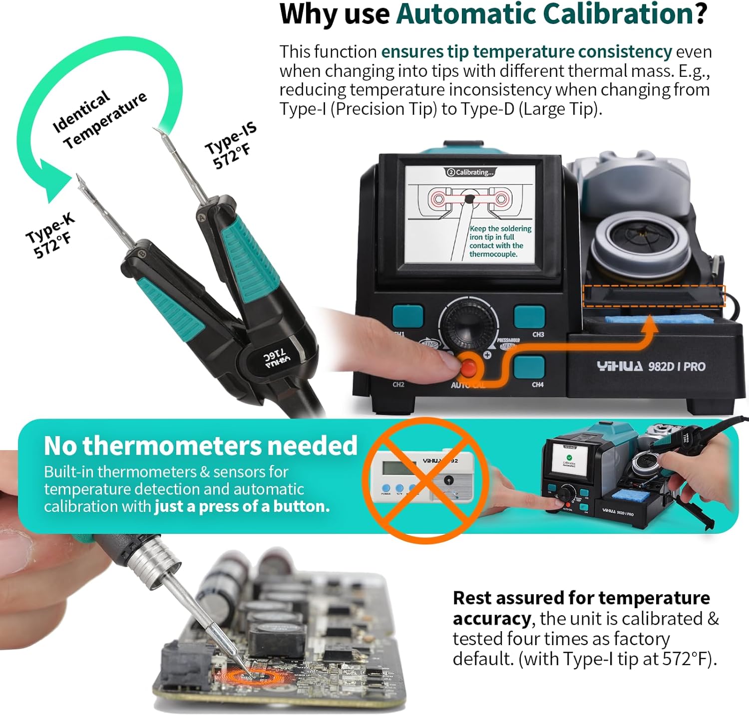 | Included Components | 1 x YIHUA 982D-I PRO Precision Hot Tweezers Soldering Station, 1 x lead-free solder wire, 4 x C245 tips, 6 x C120 tips, 6 x thermocouples |