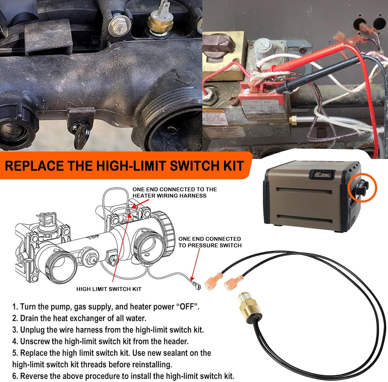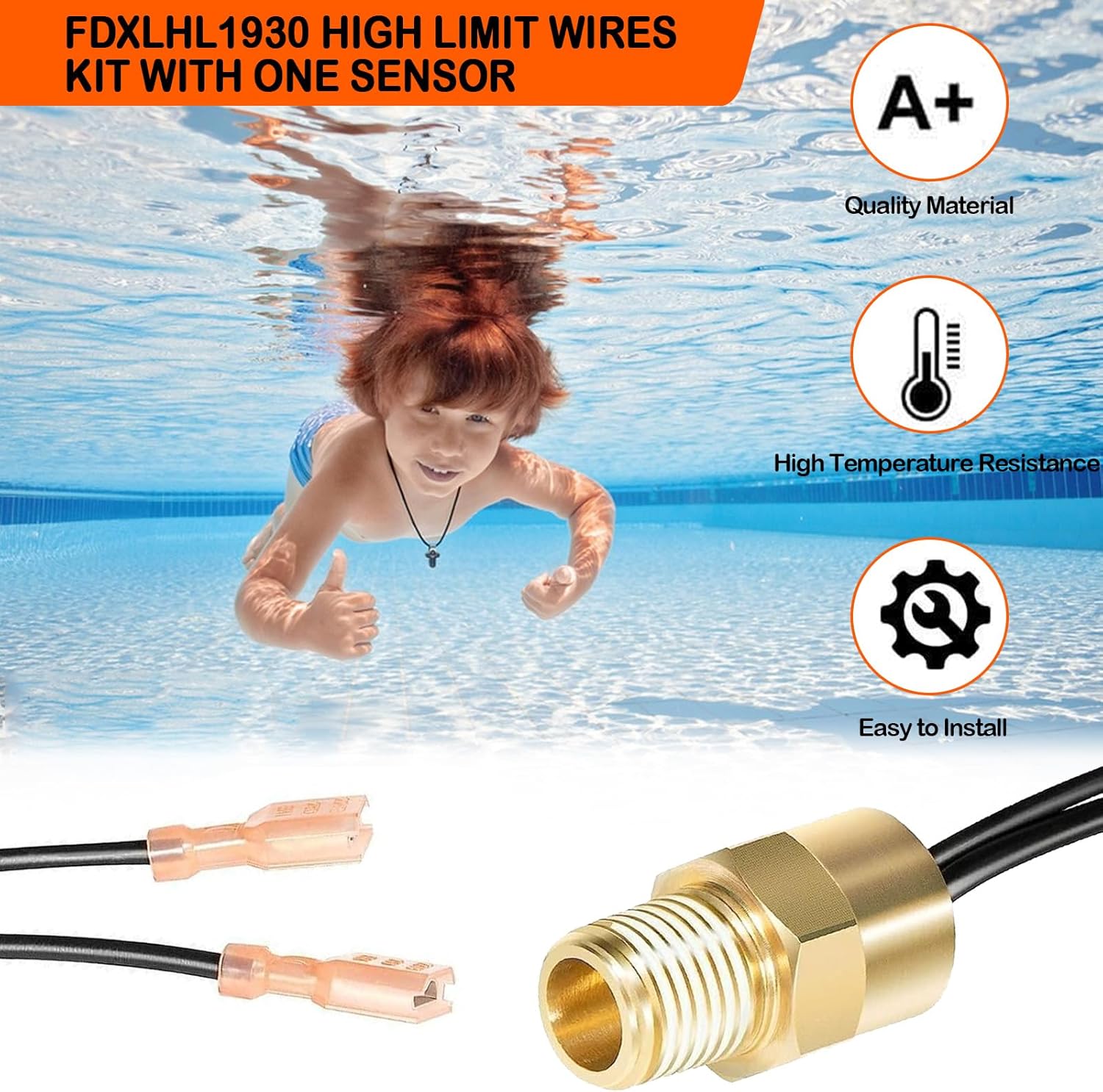 >>>WIDE COMPATIBILITY:Compatible with Hayward Universal H-series Low Nox pool heater models H150FDN, H150FDP, H200FDN, H200FDP, H250FDN, H250FDP, H300FDN, H300FDP, H350FDN, H350FDP, H400FDN, H400FDP, H500FDN, H500FDP.Replace the old and damaged high limit kit,and make your H-Series Low NoxHeater work well. >>>SUPERIOR MATERIAL: Made of high-quality copper, rubber and plastic. The pool heater parts kit included one line kit and one sensor.high performance and long service time. >>>GREAT PERFORMANCE:The 135 degree Fahrenheit high limit heater part kit is fit for Hayward Universal H-Series H150FD, H200FD, H250FD, H300FD, H350FD, H400FD, H500FD Low Nox Pool Heater. >>>EASY TO INSTALL: The high-limit pool heater parts kit replace for Hayward H-Series high-limit kit, replacing the OEM part NO. FDXLHLI1930.Easy to install, saving you time and effort. >>>PREMIUM SERVICE: If you encounter any problems or you're not 100% satisfied with this product, please contact us in time, we will deal with you as soon as possible.No worry about buying!