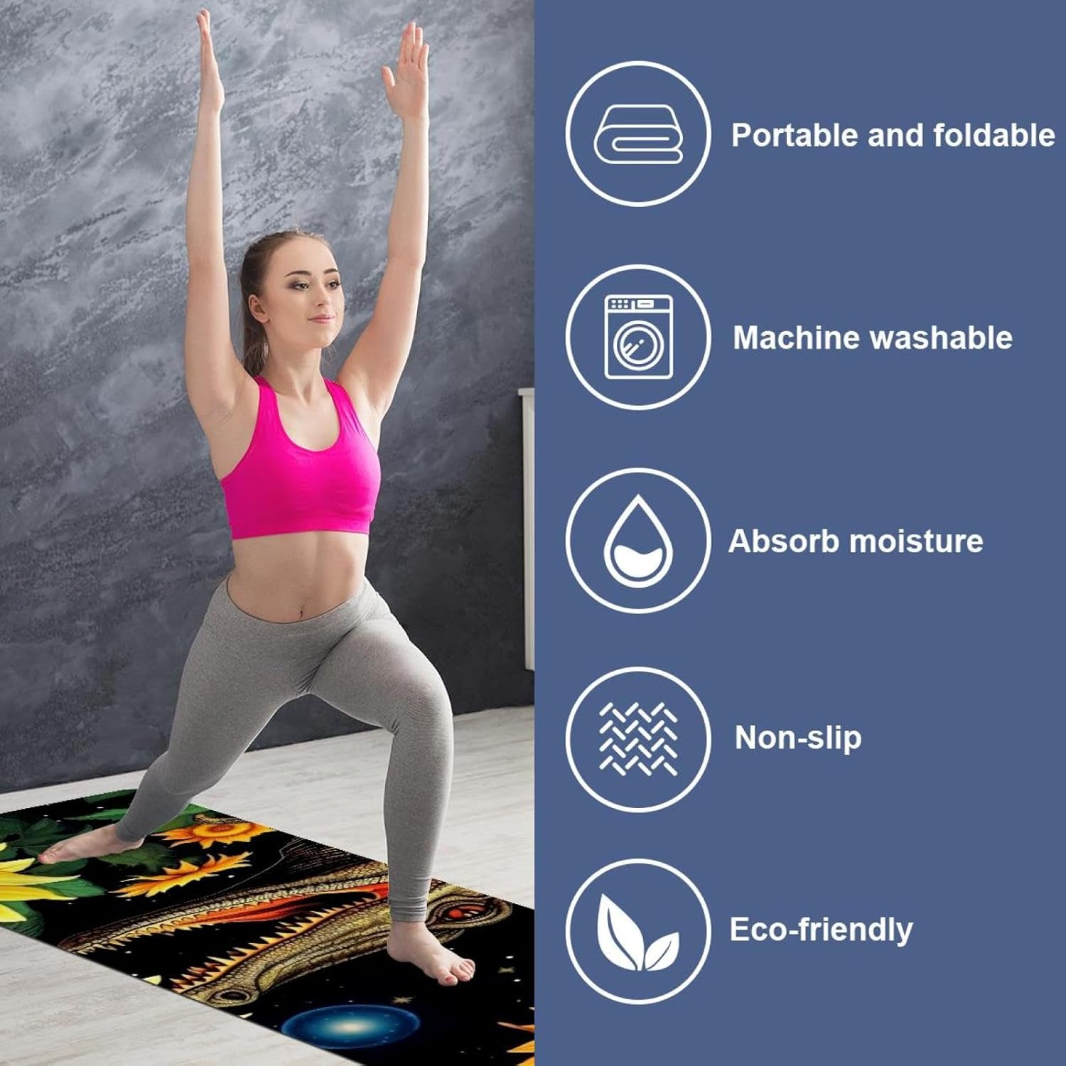 MUOOUM Yoga Mat Towels - Available in A Variety of Awesome Patterns Eye-catching Pattern These vibrant patterns will make your workout more enjoyable. Easy Carrying Yoga Towel for Travel Lightweight and compact, the towel can keep your bag weight down on the go. Easily pack & store inside the mesh travel bag to take to classes, gym, travel, camping, beach & more. Features: * Material: Suede fabric * Size: 72.8x26.8 in / 185x68 cm * Thickness: 0.04 in / 0.1 cm * Weight: 1500g * Color: As the picture shows Package Includes: 1 x Yoga towel 1 x storage bag Tips: 1. Due to the shooting angle and shooting light problems, the product is allowed to have a slight color difference 2. We offer customized services, you can customize special styles for family and friends, if you need, please feel free to contact us