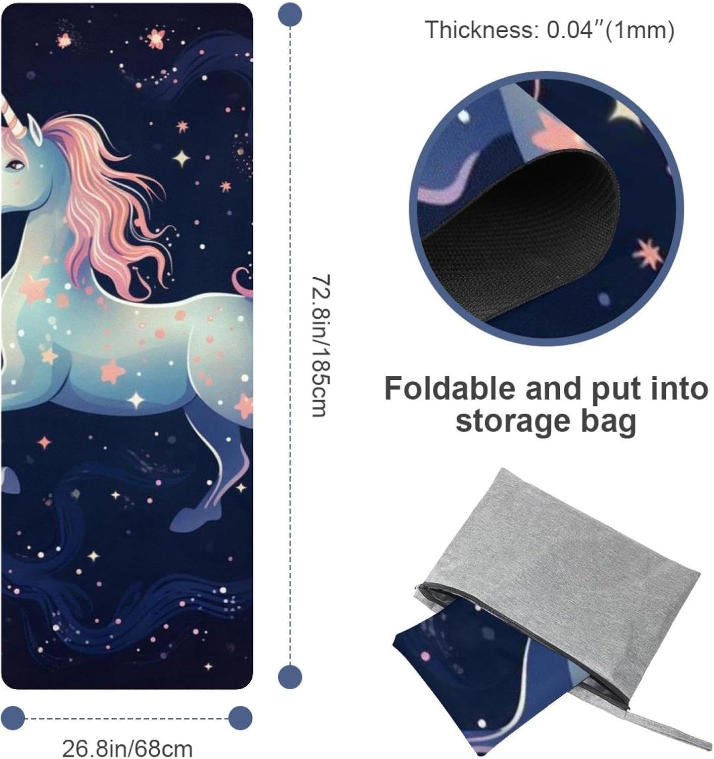 MUOOUM Yoga Mat Towels - Available in A Variety of Awesome Patterns Eye-catching Pattern These vibrant patterns will make your workout more enjoyable. Easy Carrying Yoga Towel for Travel Lightweight and compact, the towel can keep your bag weight down on the go. Easily pack & store inside the mesh travel bag to take to classes, gym, travel, camping, beach & more. Features: * Material: Suede fabric * Size: 72.8x26.8 in / 185x68 cm * Thickness: 0.04 in / 0.1 cm * Weight: 1500g * Color: As the picture shows Package Includes: 1 x Yoga towel 1 x storage bag Tips: 1. Due to the shooting angle and shooting light problems, the product is allowed to have a slight color difference 2. We offer customized services, you can customize special styles for family and friends, if you need, please feel free to contact us