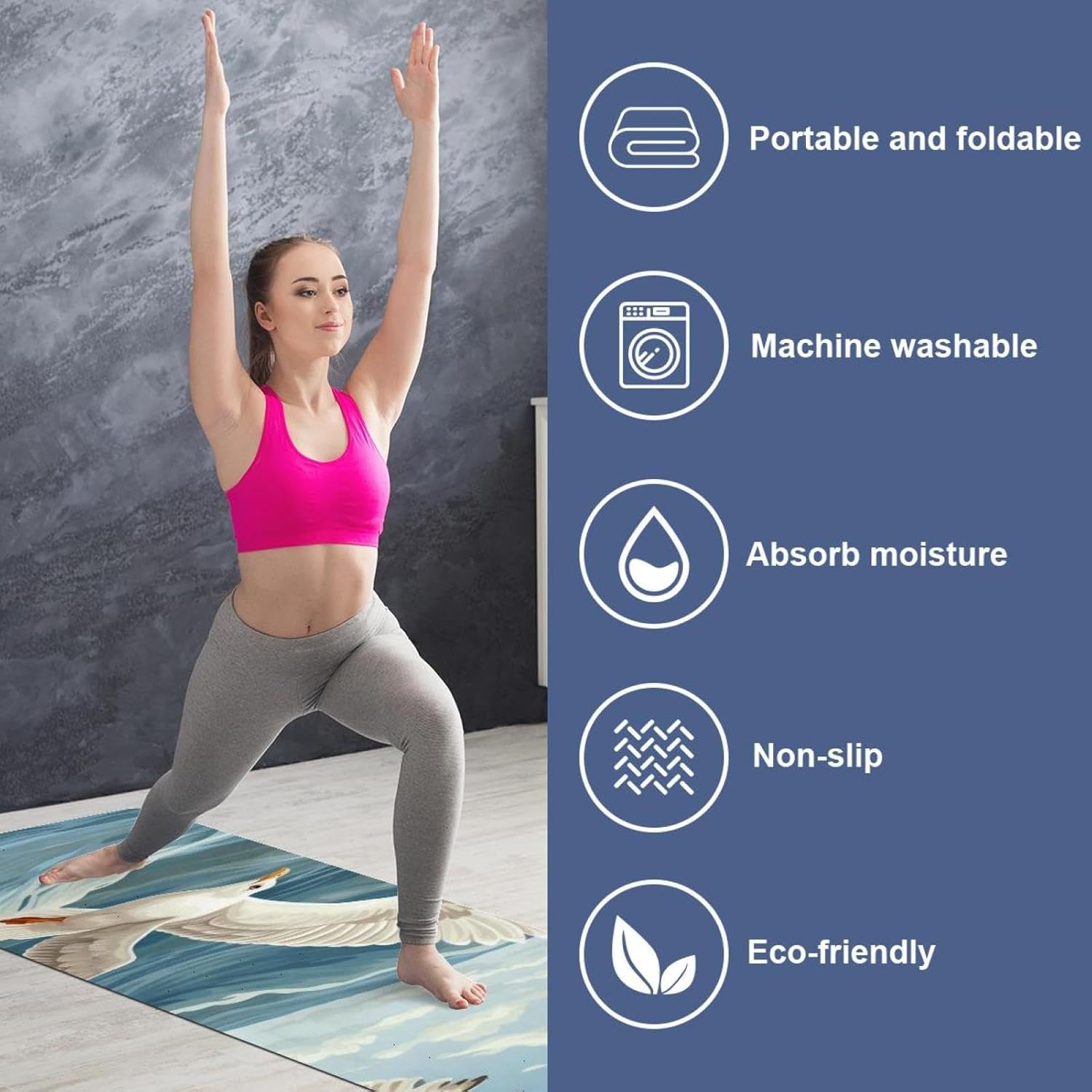 MUOOUM Yoga Towel, Seagull Pattern Non Slip Sweat Absorbent Hot Yoga Mat Towel for Hot Yoga, Pilates and Fitness - 72.8-inch x 26.8-inch